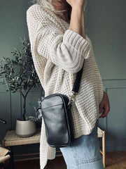Tillverkad av 100 % lammskinn erbjuder denna mobilväska en mjuk och behaglig känsla vid varje användning. Lammskinnets naturliga smidighet gör att väskan formar sig efter innehållet, vilket ger en passform som känns skräddarsydd. Dessutom bidrar materialets hållbarhet till att skydda dina ägodelar, samtidigt som det åldras vackert över tid.