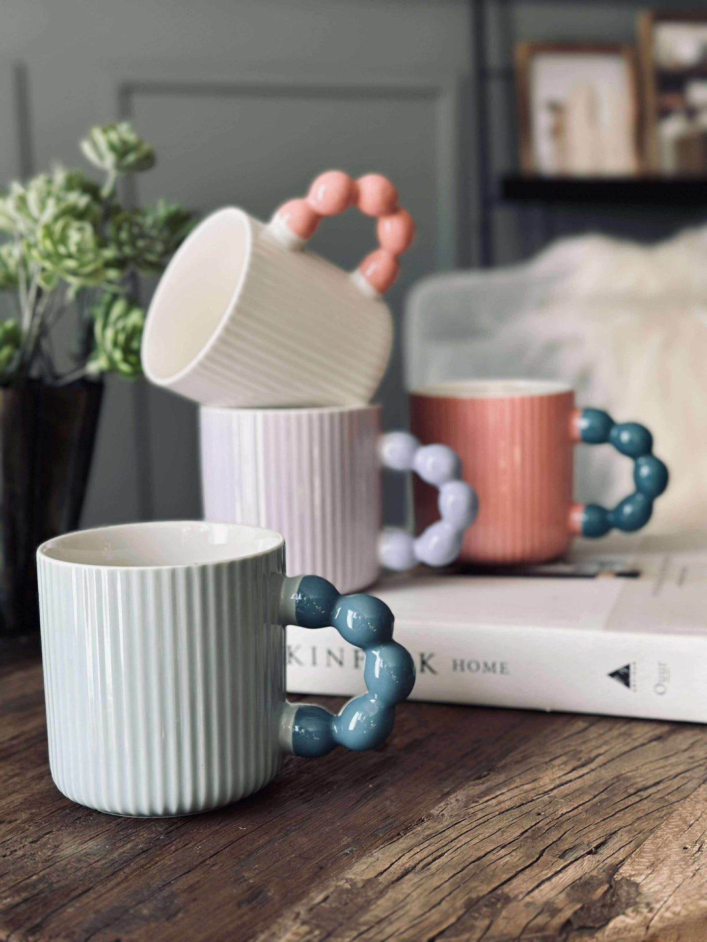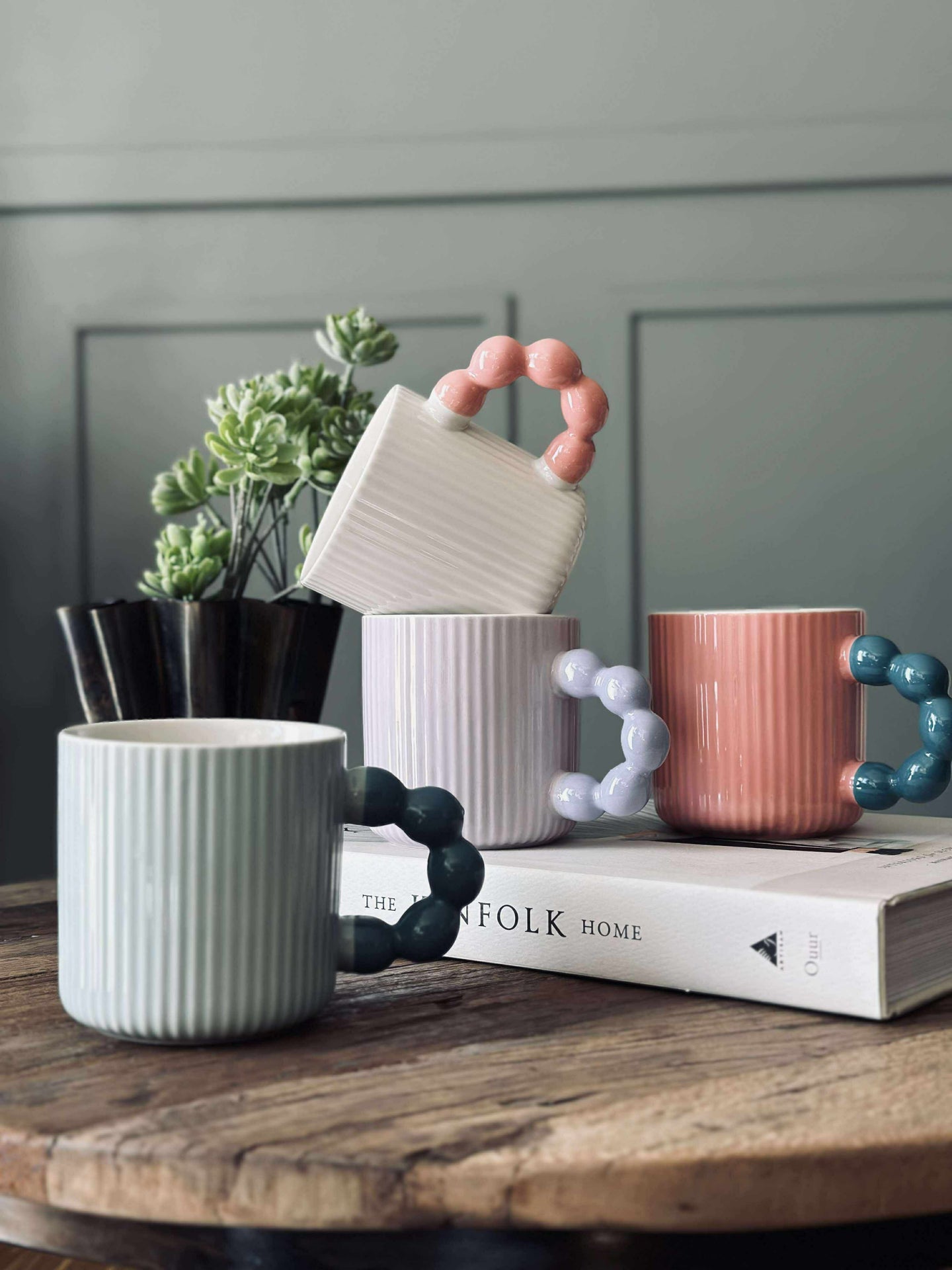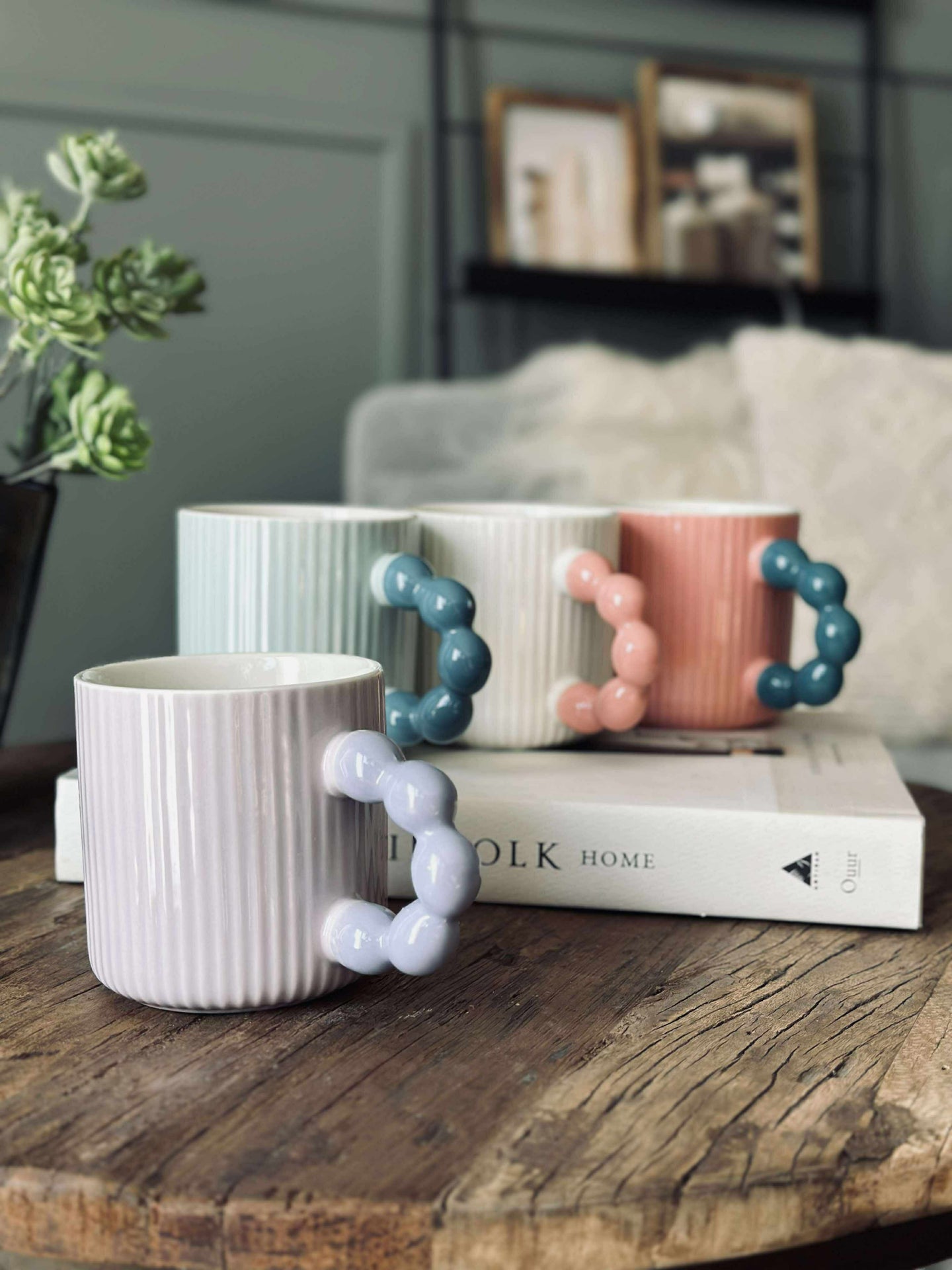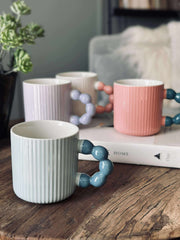 Den pastellfärgade muggen är tillverkad av stengods, vilket ger en robust och hållbar känsla. Materialet bidrar till att hålla drycker varma under längre tid, utmärkt för långa frukostar eller avkopplande stunder. Stengodsets naturliga tyngd ger en stabilitet som gör att muggen står stadigt på bordet. Dessutom är den diskmaskinssäker, vilket förenklar vardagen.