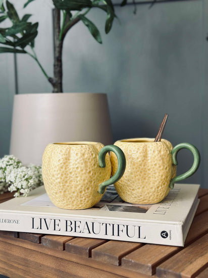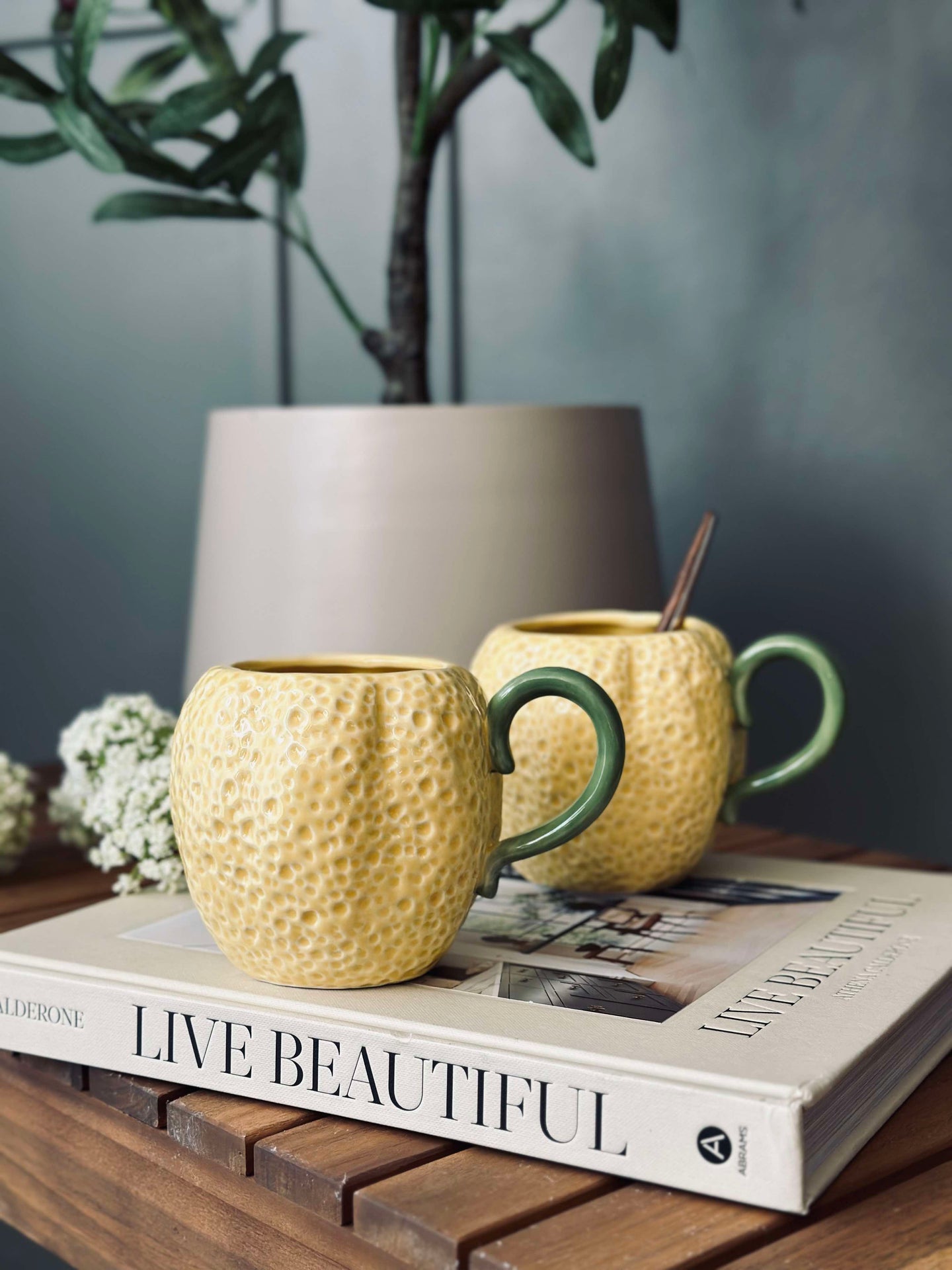 Citruskoppen är tillverkad av stengods, vilket ger den en robust och hållbar struktur. Materialet bidrar till att hålla drycken varm längre, vilket är särskilt användbart under kalla dagar. Stengodsets naturliga isolerande egenskaper gör att koppen är bekväm att hålla i, även när den är fylld med varm vätska. Denna egenskap gör den till ett praktiskt val för daglig användning.