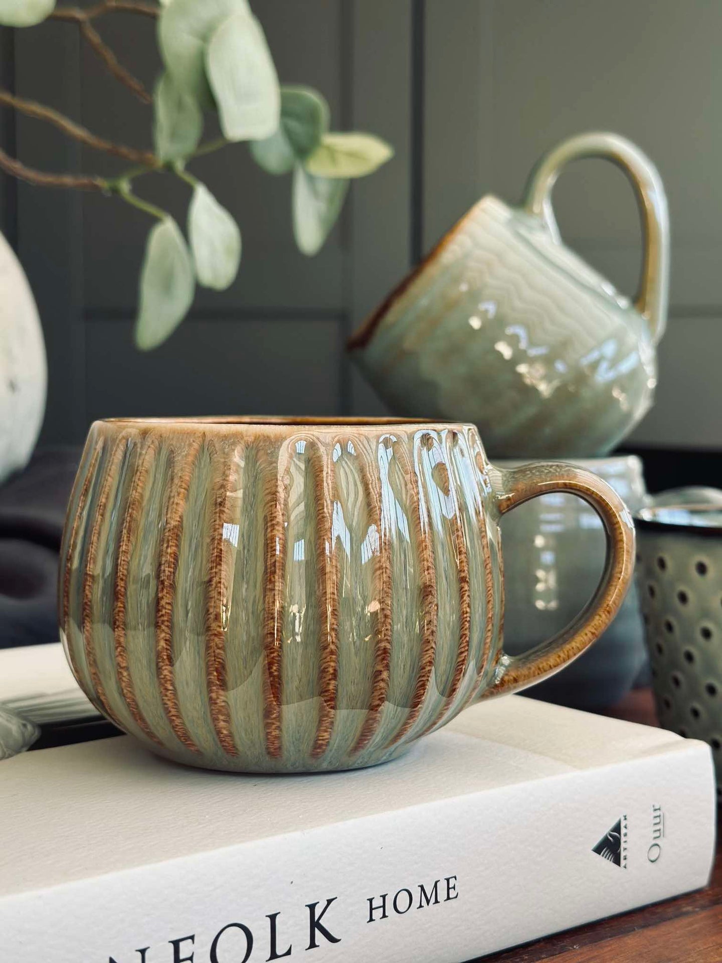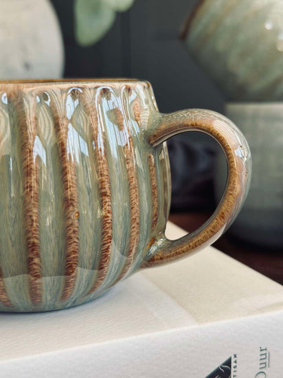 Denna keramikmugg, tillverkad av stengods, erbjuder en robust och hållbar lösning för daglig användning. Stengods är känt för sin motståndskraft mot fläckar och repor, vilket gör muggen enkel att rengöra och underhålla. Dessutom har stengods en naturlig förmåga att hålla drycker varma längre, vilket förhöjer din dryckesupplevelse, oavsett om det är morgonkaffet eller kvällsteet.