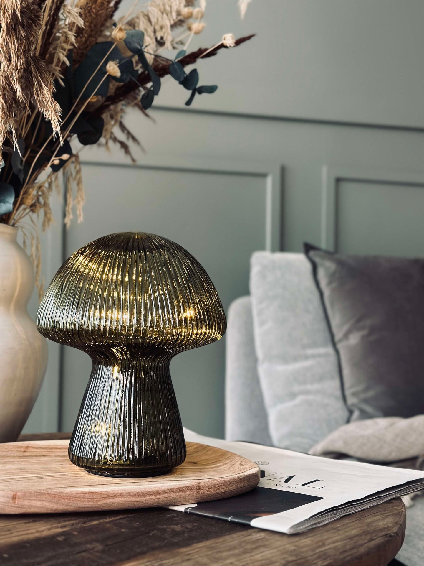 Skapa en mysig och välkomnande atmosfär i ditt hem med Mushroom LUNA - Liten grön. Låt ljuset sprida sig och skapa en lugnande känsla i ditt rum. Uppgradera din belysning idag och njut av den subtila skönheten som denna bordslampa ger till ditt hem.