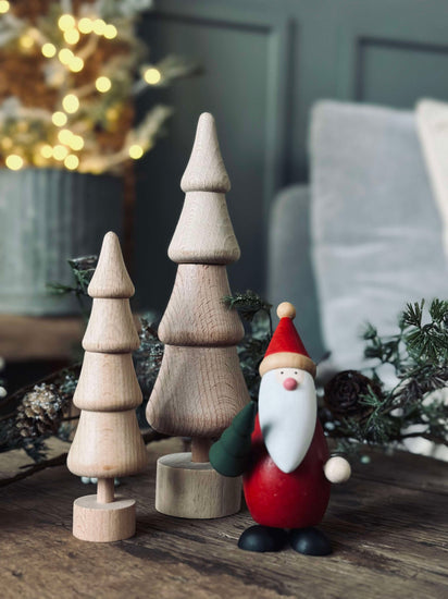 Denna julgran är tillverkad av trä, vilket ger en naturlig och hållbar känsla till ditt hem under julfirandet. Trämaterialet bidrar till en varm atmosfär och kan återanvändas år efter år, vilket gör det till ett miljövänligt val. Dess robusta konstruktion säkerställer stabilitet och långvarig användning, vilket gör att du kan njuta av en traditionell och hållbar juldekoration.