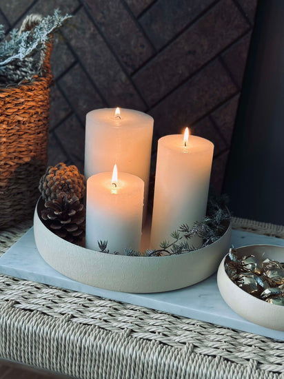 Serveringsfatet, tillverkat av metall, erbjuder hållbarhet och långvarig användning. Materialet är motståndskraftigt mot fläckar och repor, vilket gör det idealiskt för både daglig användning och festliga tillfällen. Dess robusta konstruktion säkerställer att det kan bära tyngre rätter utan att kompromissa med stabiliteten. Dessutom ger metallen en modern och stilren känsla som passar in i de flesta inredningsstilar.