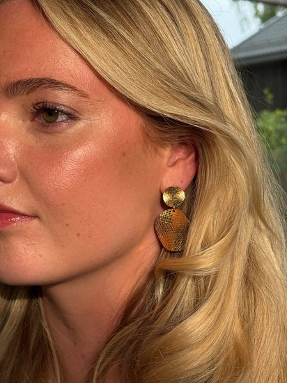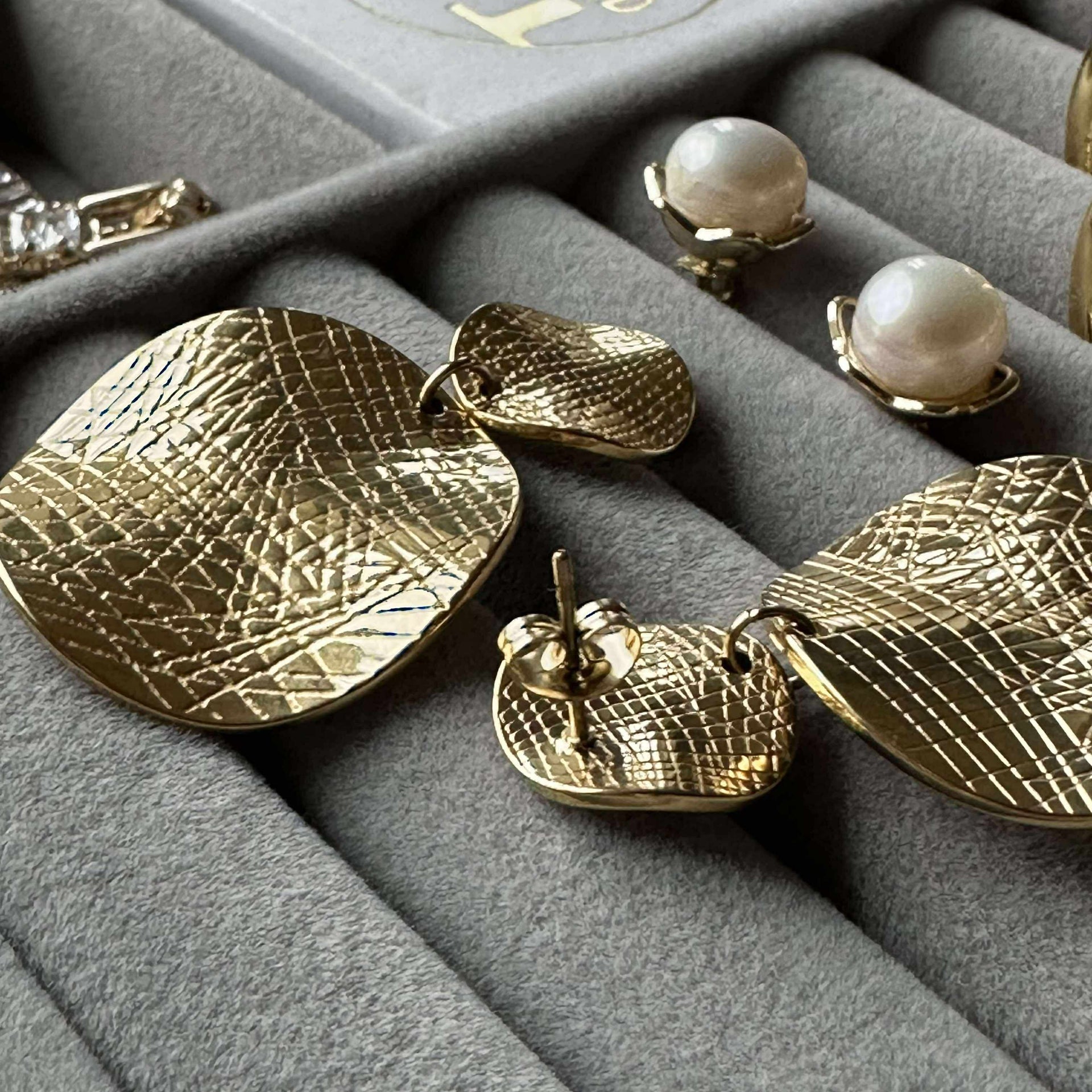 Örhängena, tillverkade av rostfritt stål med 18K guldförgyllning, erbjuder en kombination av hållbarhet och stil. Den rostfria stålkonstruktionen säkerställer långvarig användning utan att kompromissa med kvaliteten, medan guldförgyllningen tillför en varm, sofistikerad glans. Dessa örhängen är utformade för att stå emot dagligt slitage och behålla sin lyster över tid, vilket gör dem till ett pålitligt val för varje tillfälle.