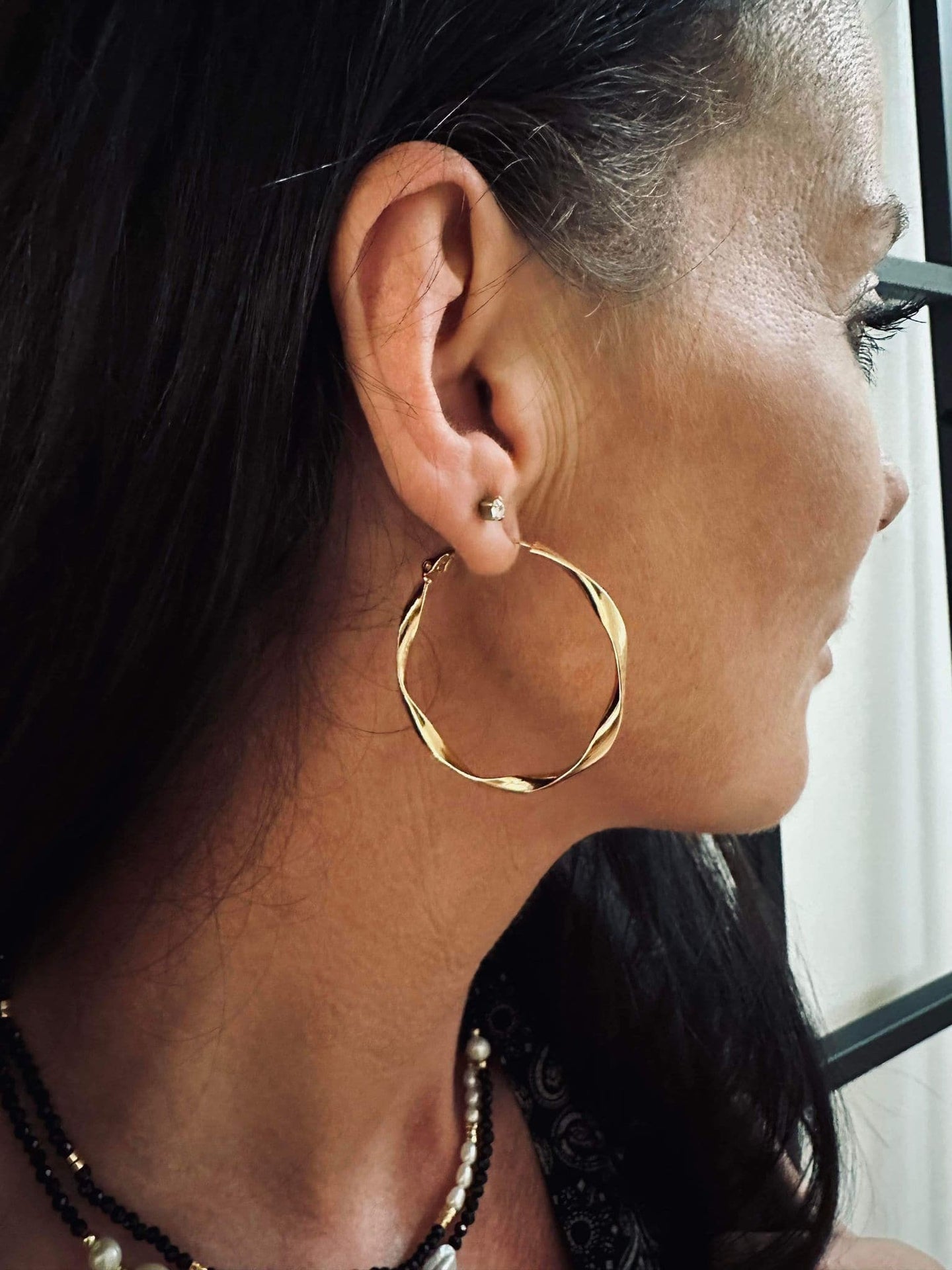 Längtar du efter att lägga till en touch av lyx till din vardagliga stil? Örhängen Hope tvinnad - förgylld är det perfekta valet. Dessa högkvalitativa, nickel-fria örhängen erbjuder en tidlös design och en autentisk guldfinish som kompletterar alla ensemble.