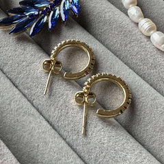 Örhängen med zirkoner är tillverkade av mässing med guldbeläggning, vilket ger en varm och inbjudande lyster. Denna kombination av material bidrar till en hållbar konstruktion som motstår slitage och bevarar sin glans över tid. Guldbeläggningen ger en subtil och sofistikerad känsla, vilket gör dessa örhängen till ett mångsidigt val för olika tillfällen.