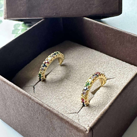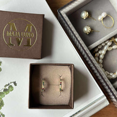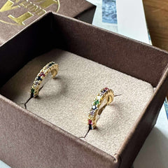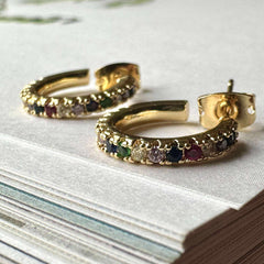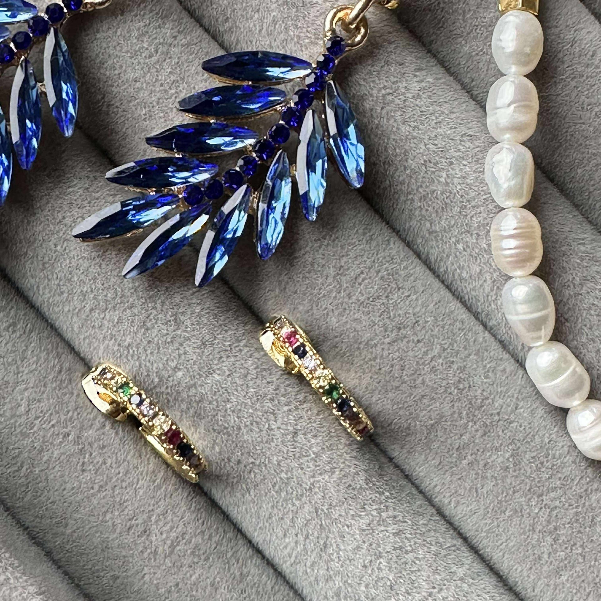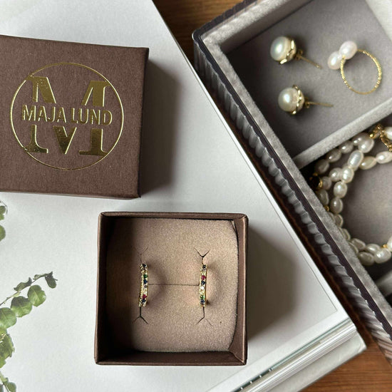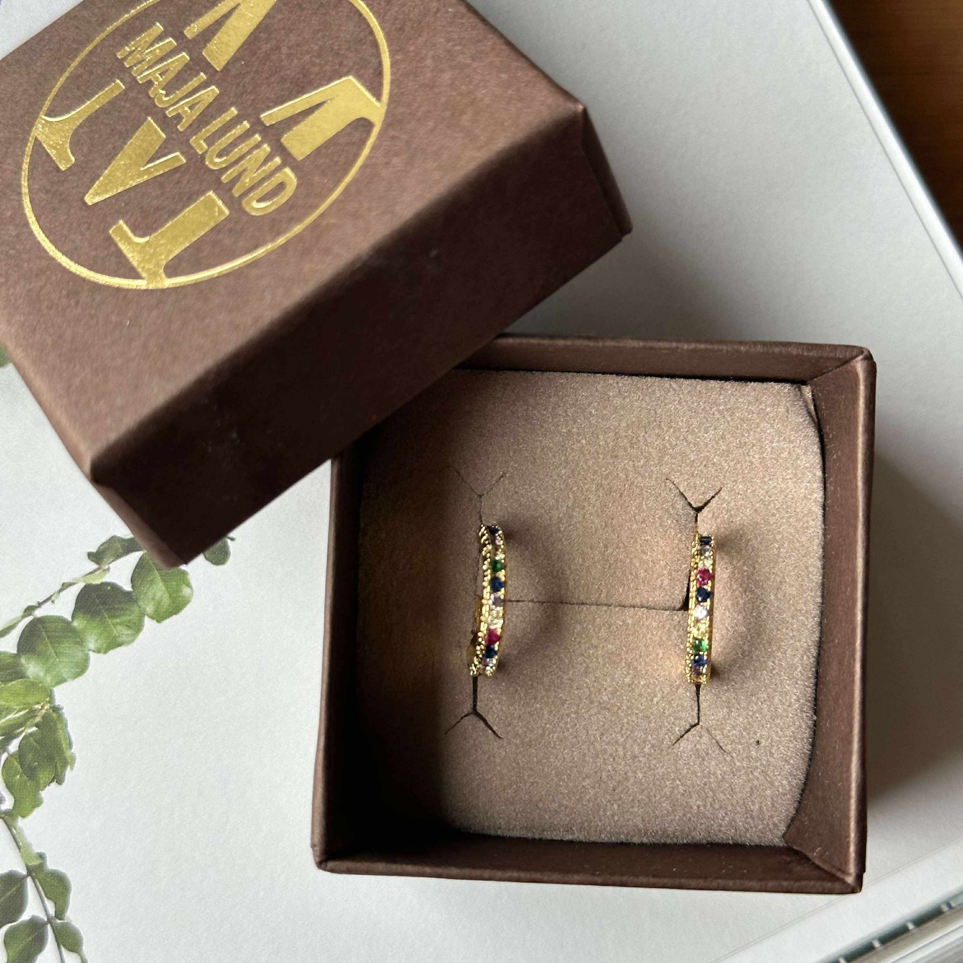 Känner du att dina accessoarer saknar en touch av färg och stil? Dessa örhängen kombinerar subtil lyx med mångfärgade stenar för att ge en distinkt detalj till din look. Utmärkta för att tillföra något speciellt vid varje tillfälle.