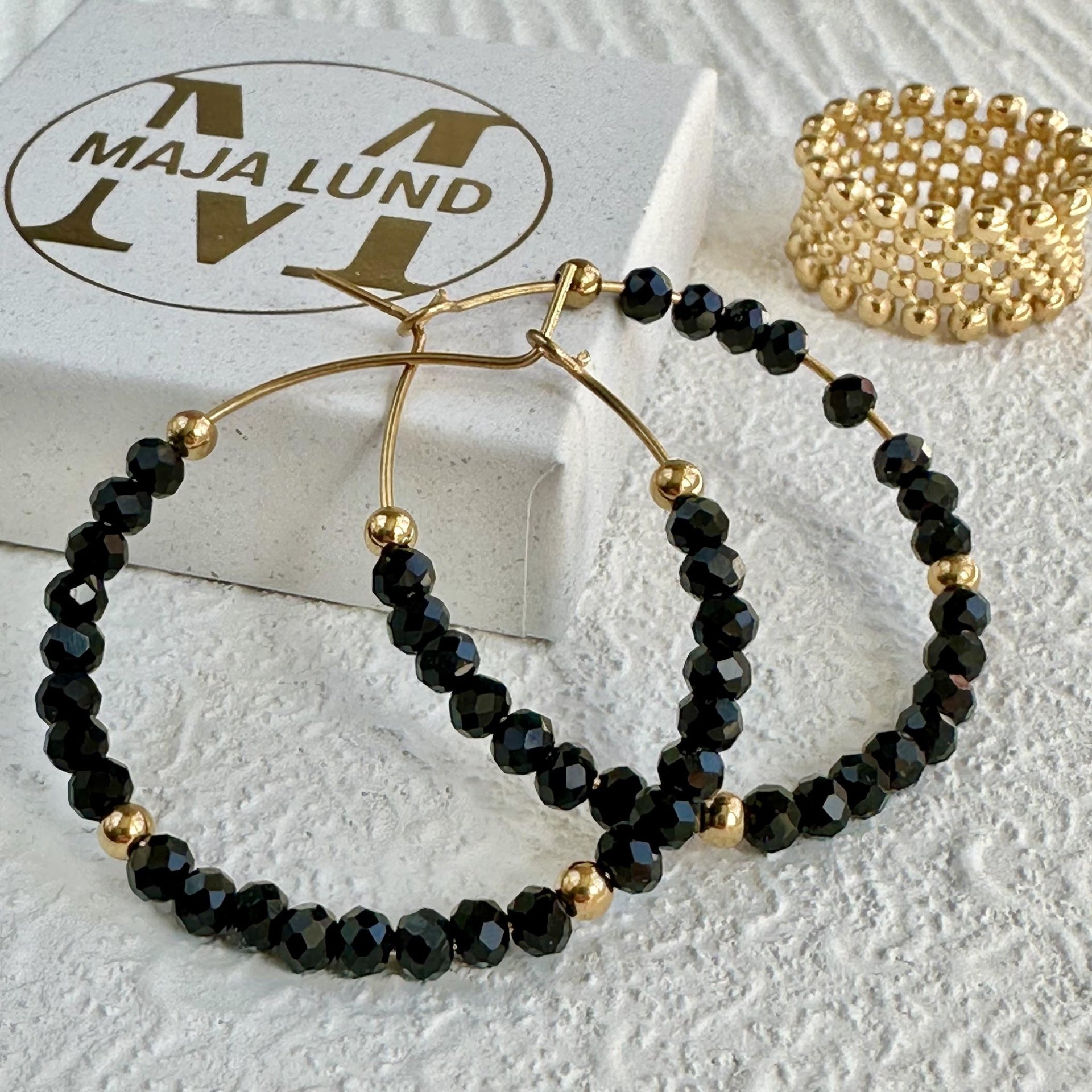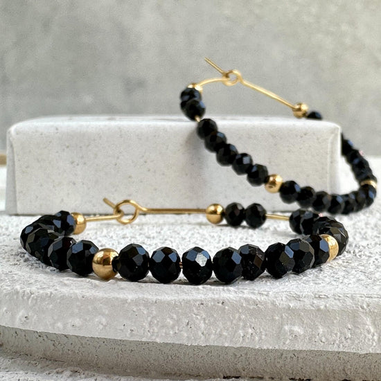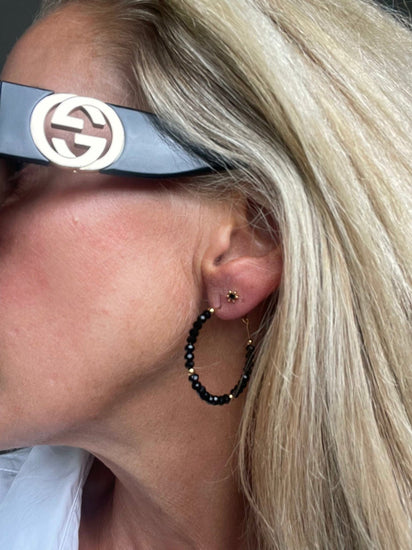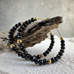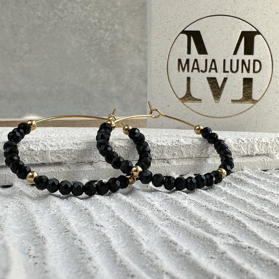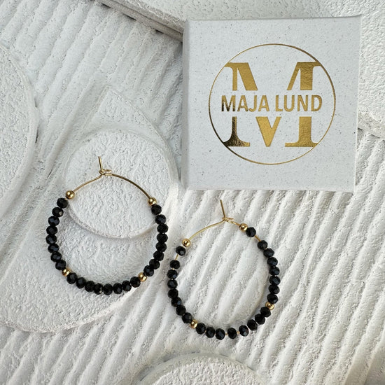 - Vackra hoops i svart med fasetterade pärlor
