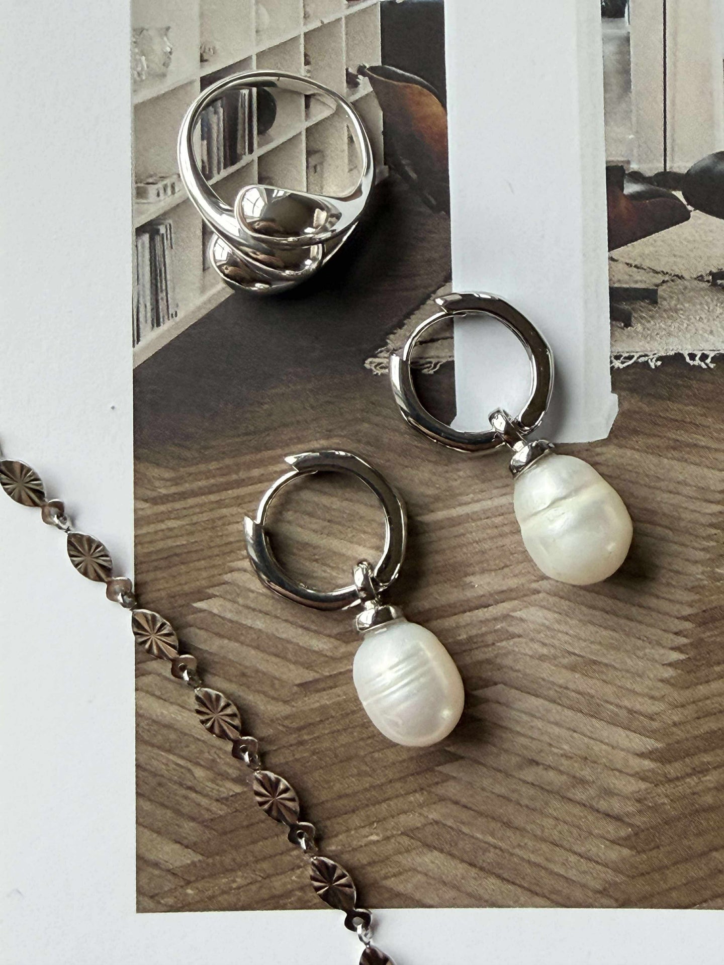 De äkta sötvattenspärlorna i barockform ger varje par örhängen en individuell karaktär, vilket gör att bäraren kan uttrycka sin personliga stil. Den unika formen på pärlorna skapar en naturlig och organisk känsla, och deras subtila glans tillför en sofistikerad touch till både vardags- och festklädsel. Dessa pärlor är ett tidlöst val som kompletterar olika looks med sin naturliga skönhet.