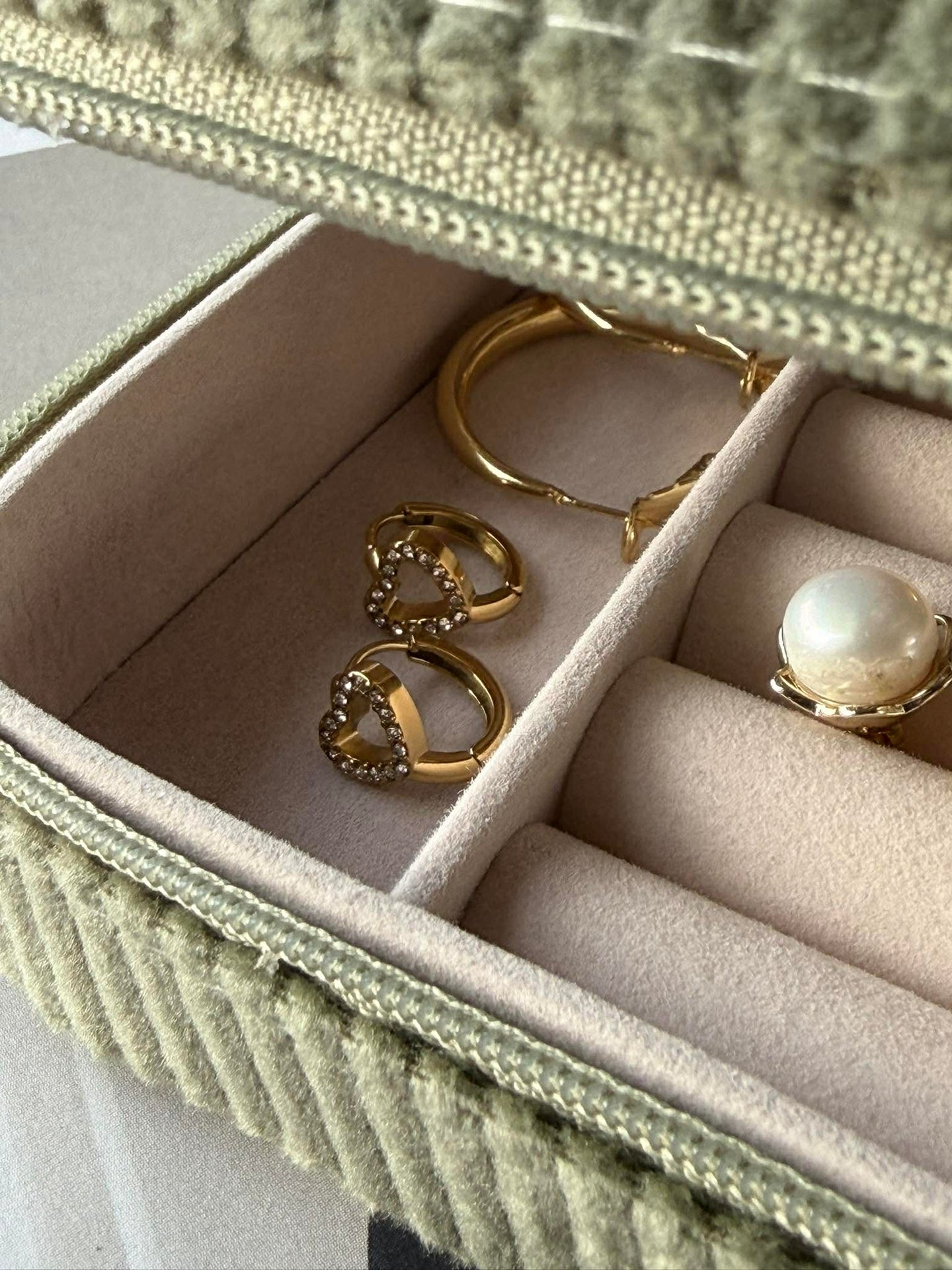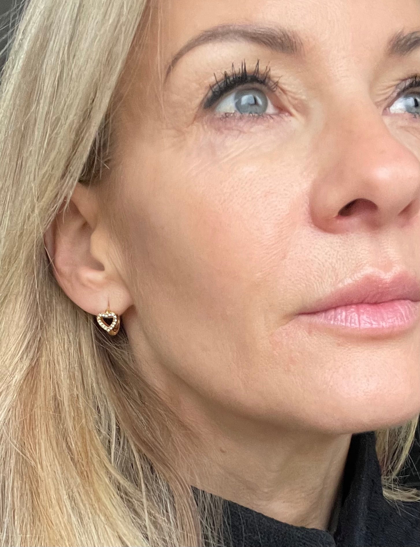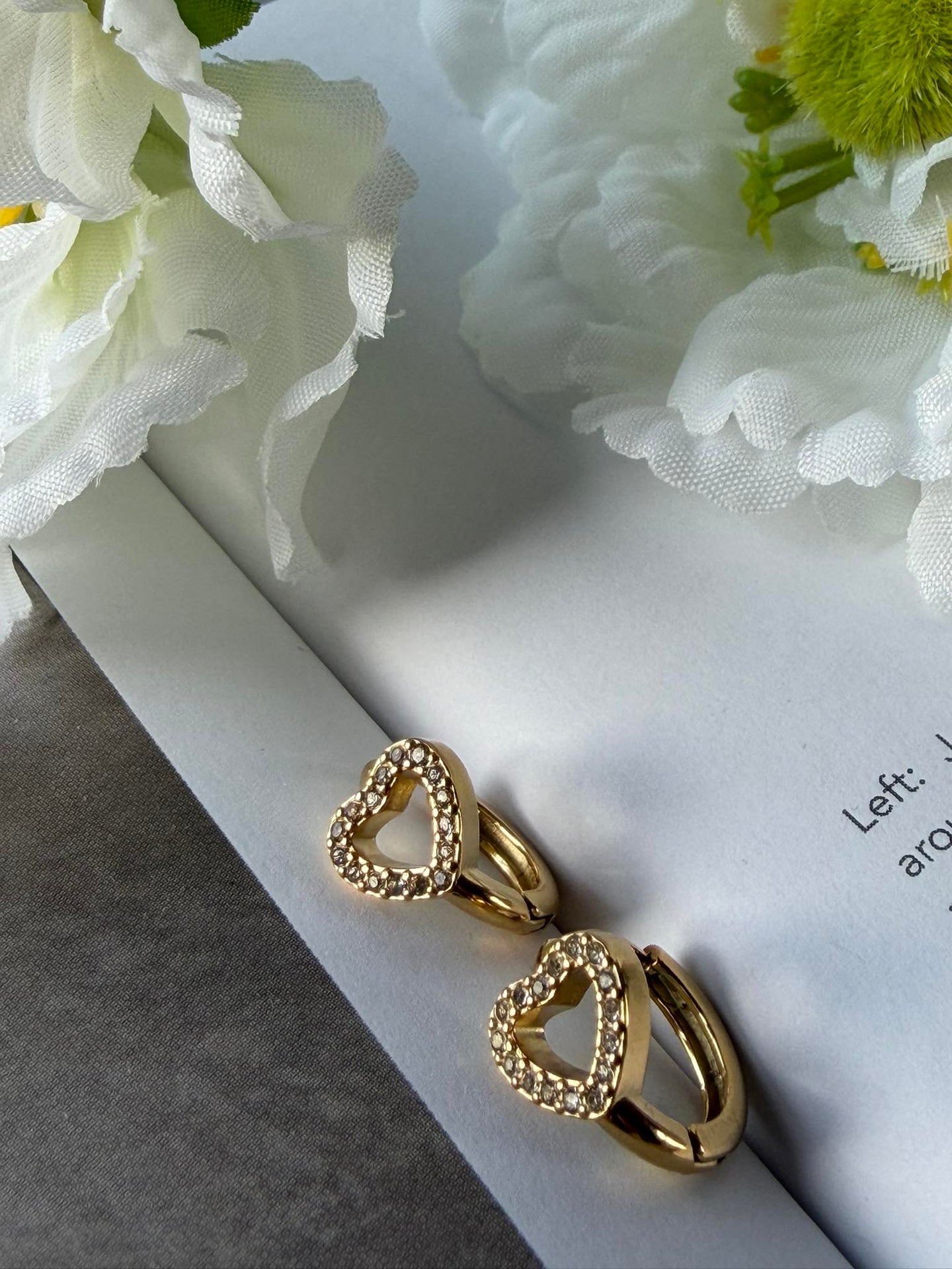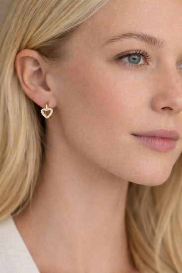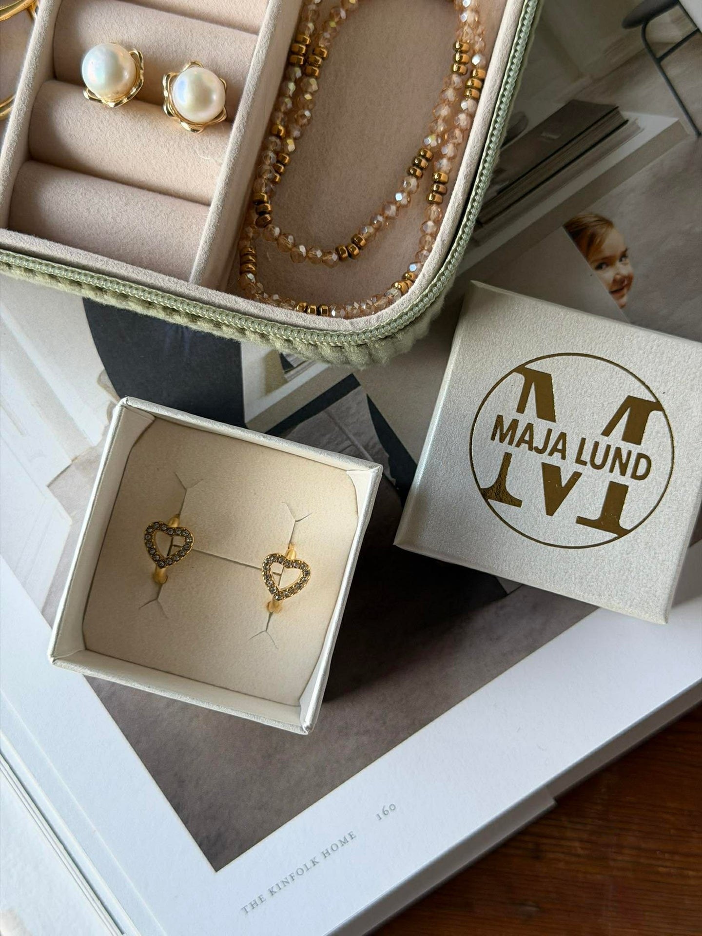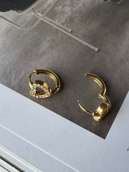 Örhängen VIELLA är vackra, små hoops med ett klassiskt hjärta som är besatt med klara zirkoner längs kanten. Det ger ett lätt skimmer och ett elegant uttryck som är lätt att styla till hela garderoben.