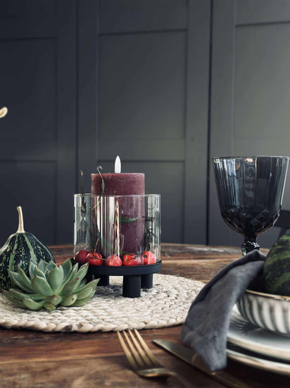 Hurricane med glas är en svart hurricane-ljusstake i glas med ett enkelt, enfärgat uttryck och en tydlig cylindrisk silhuett. Den kompakta storleken gör den lätt att placera när du vill ha en lugn detalj i inredningen. Ljusstaken har 2 funktioner, så du kan variera uttrycket i din dekoration.