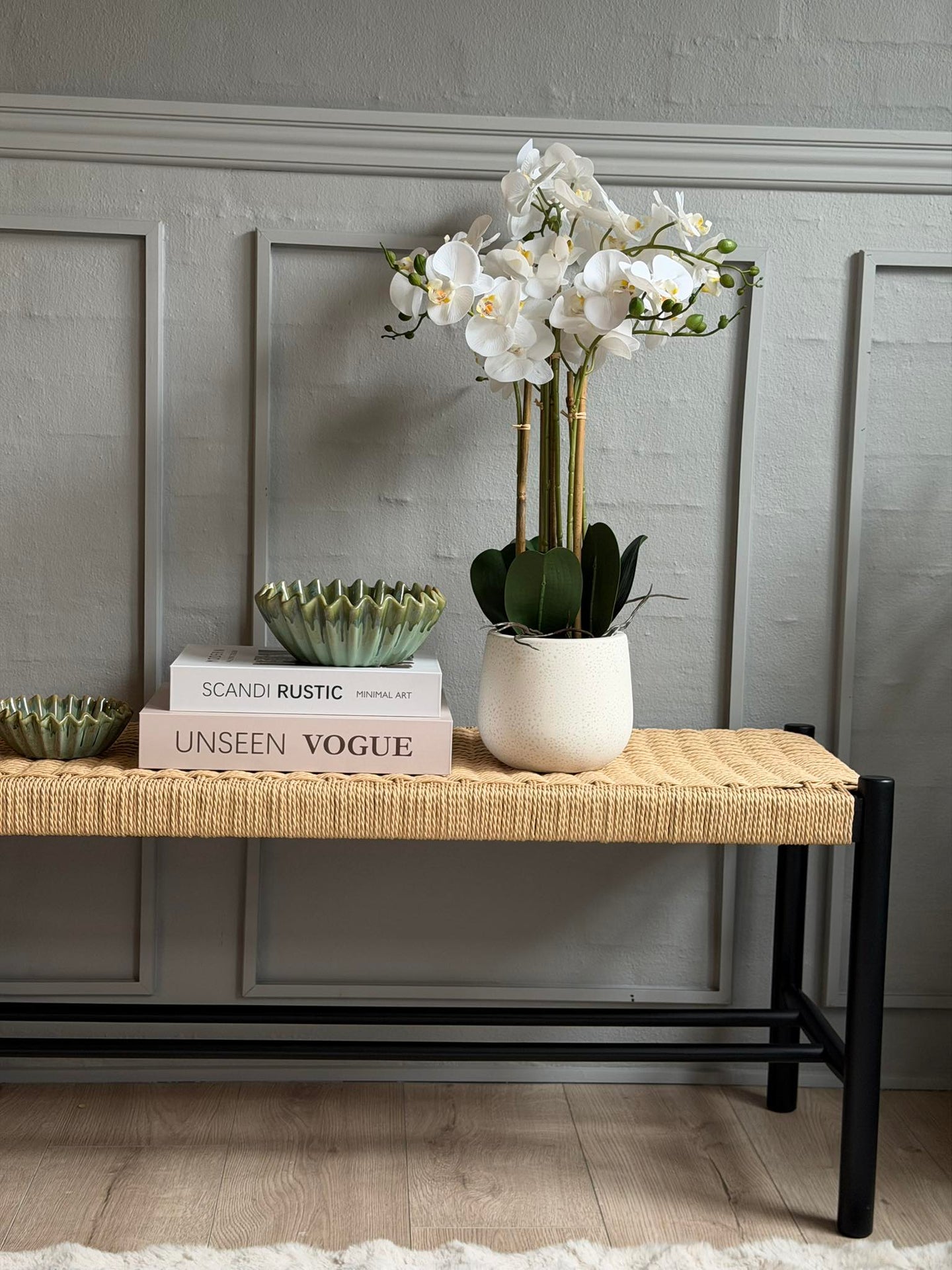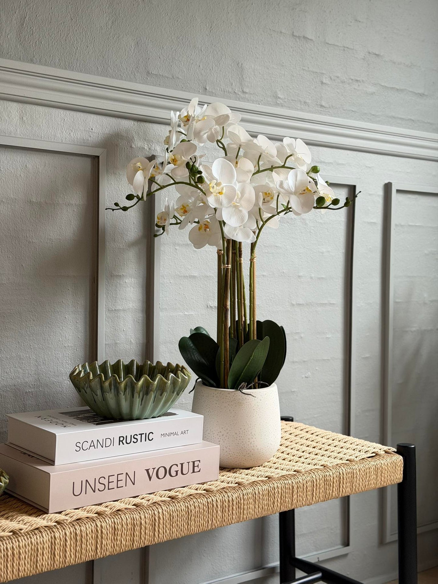 Orkidén lämpar sig som dekoration i vardagsrum, entré eller på kontoret, där den kan stå som ett lugnt blickfång i inredningen.