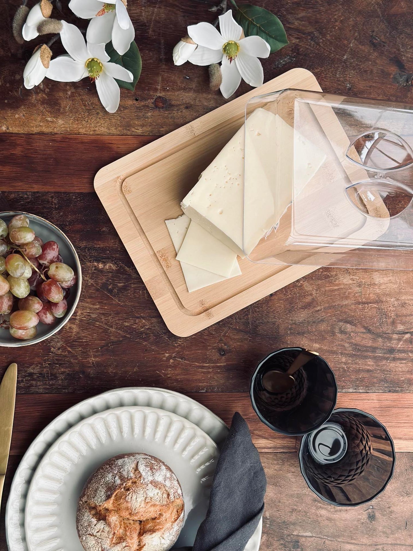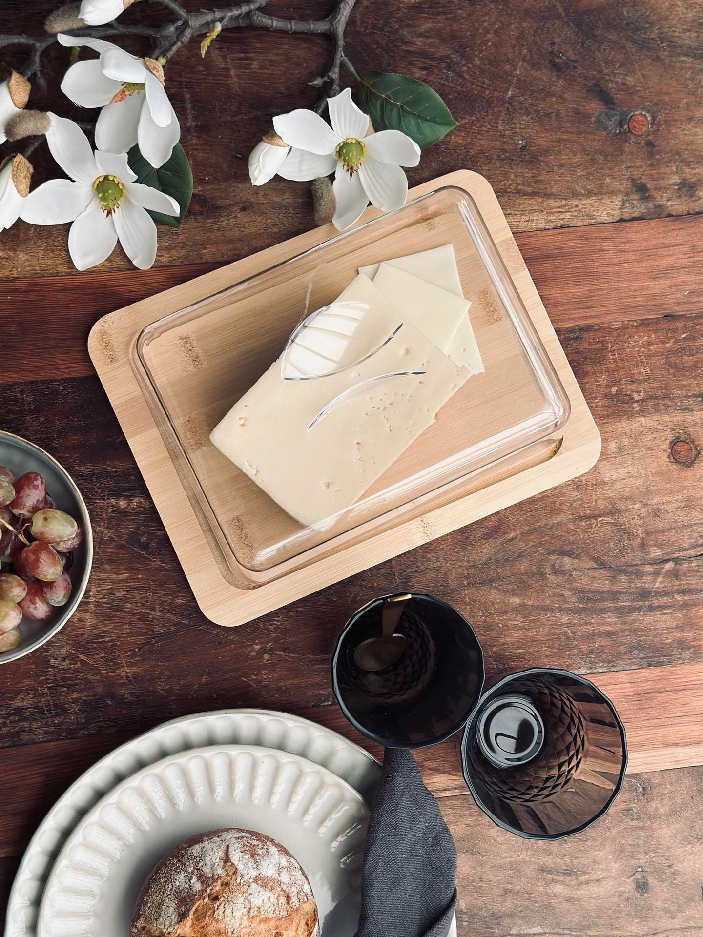 Ostbehållaren är tillverkad av en kombination av bambu och plast, vilket ger en hållbar och robust lösning för förvaring av ost. Bambu är ett naturligt material som är både lätt och starkt, vilket bidrar till att skydda osten mot skador samtidigt som det är miljövänligt. Plastdelen säkerställer en lufttät försegling, vilket hjälper till att bevara ostens färskhet längre.