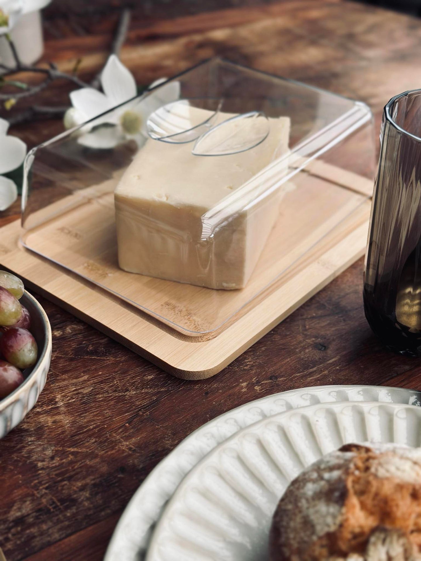 Trött på att hålla osten fräsch och smaklig? Denna ostbehållare är en praktisk lösning för att förvara osten skyddad och organiserad. Kombinationen av bambu och plast ger en hållbar och estetisk förvaringslösning för ditt kök.