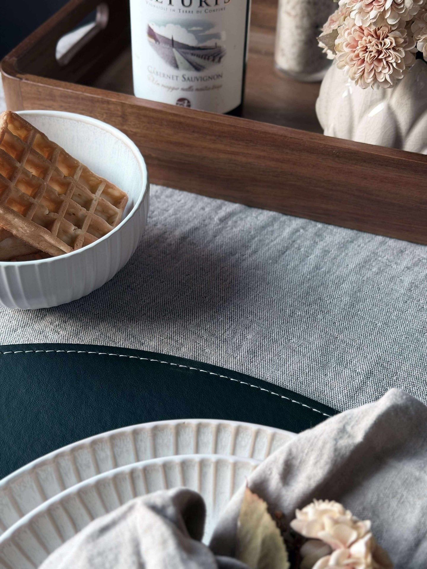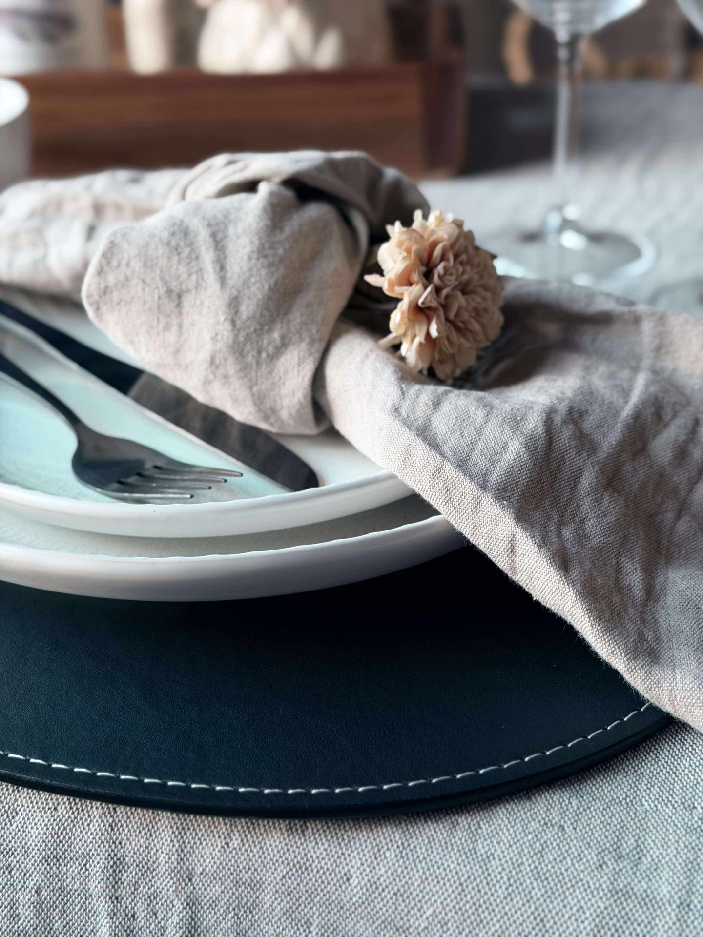 Bordsunderlägg tillverkade av konstläder erbjuder en hållbar och lättskött yta som skyddar bordet mot spill och värme. Materialet är enkelt att torka av, vilket gör det praktiskt för dagligt bruk. Dessutom ger konstläder en modern och stilren känsla till matplatsen, vilket bidrar till en uppdaterad och sammanhållen inredning i köket.