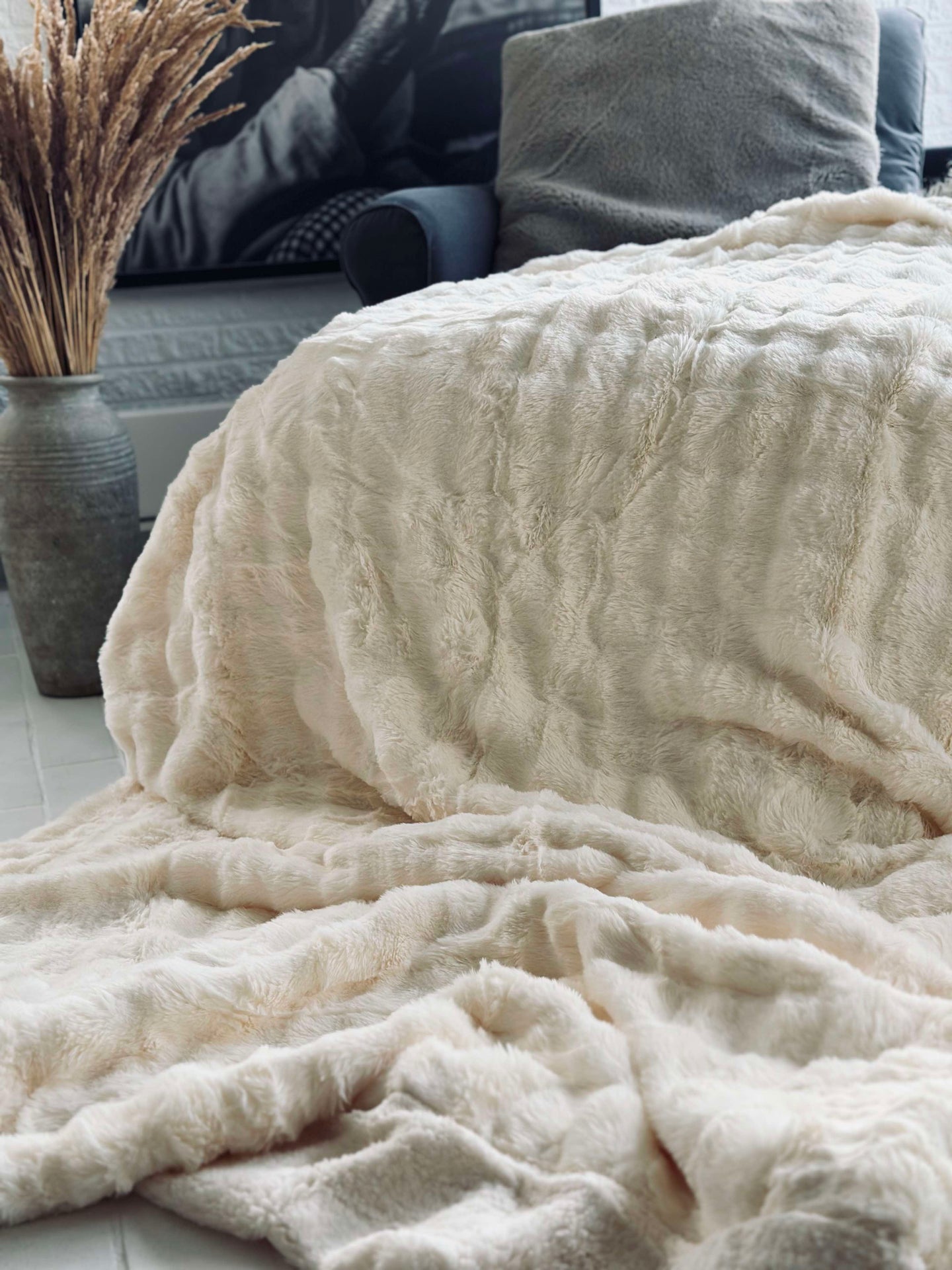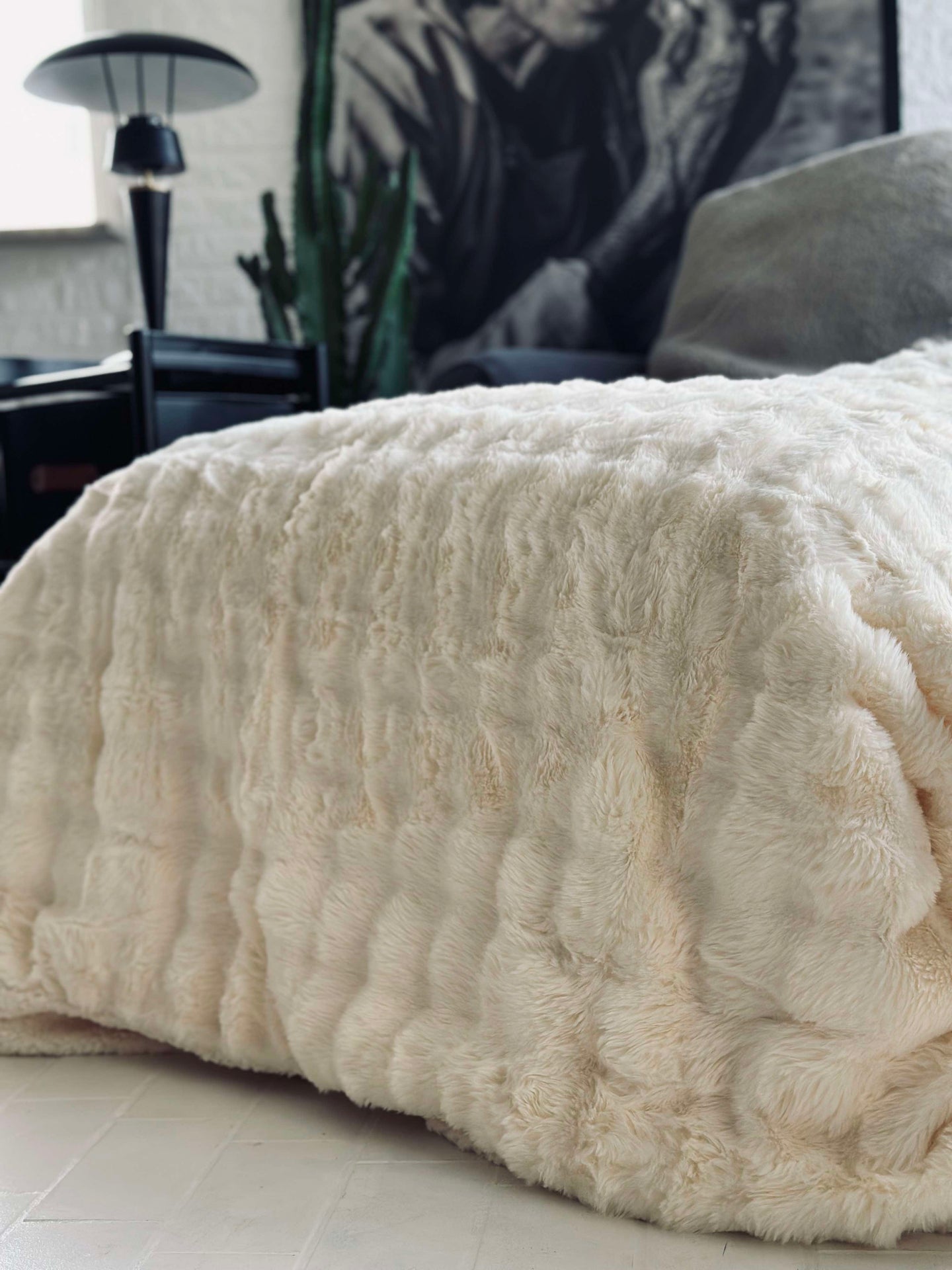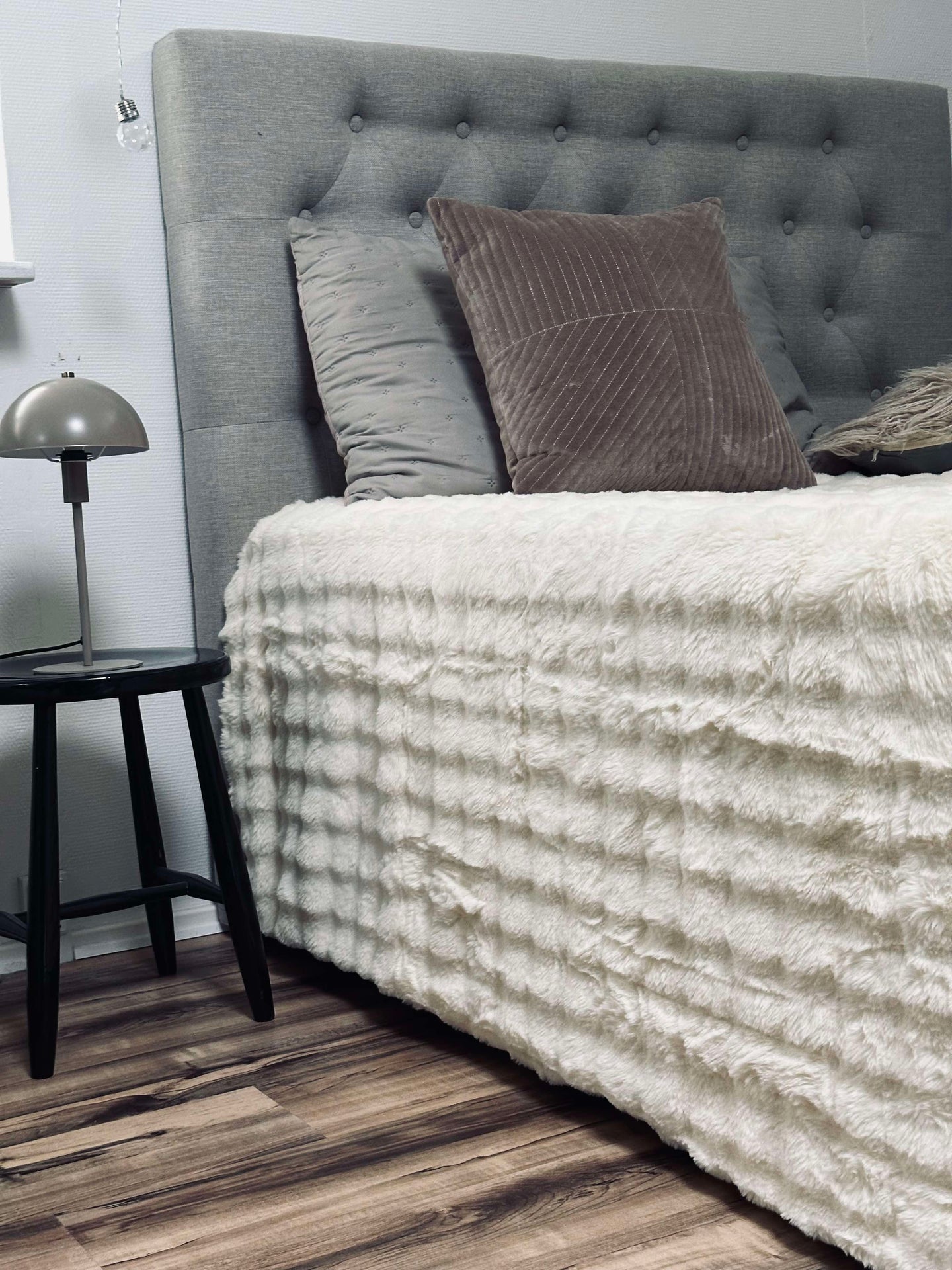 • Färgen på sängetäcket är varmvit