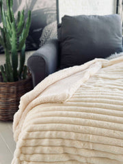 - Dubbelt sängetäcke med mjuk fleece på baksidan