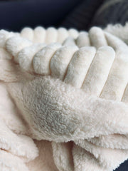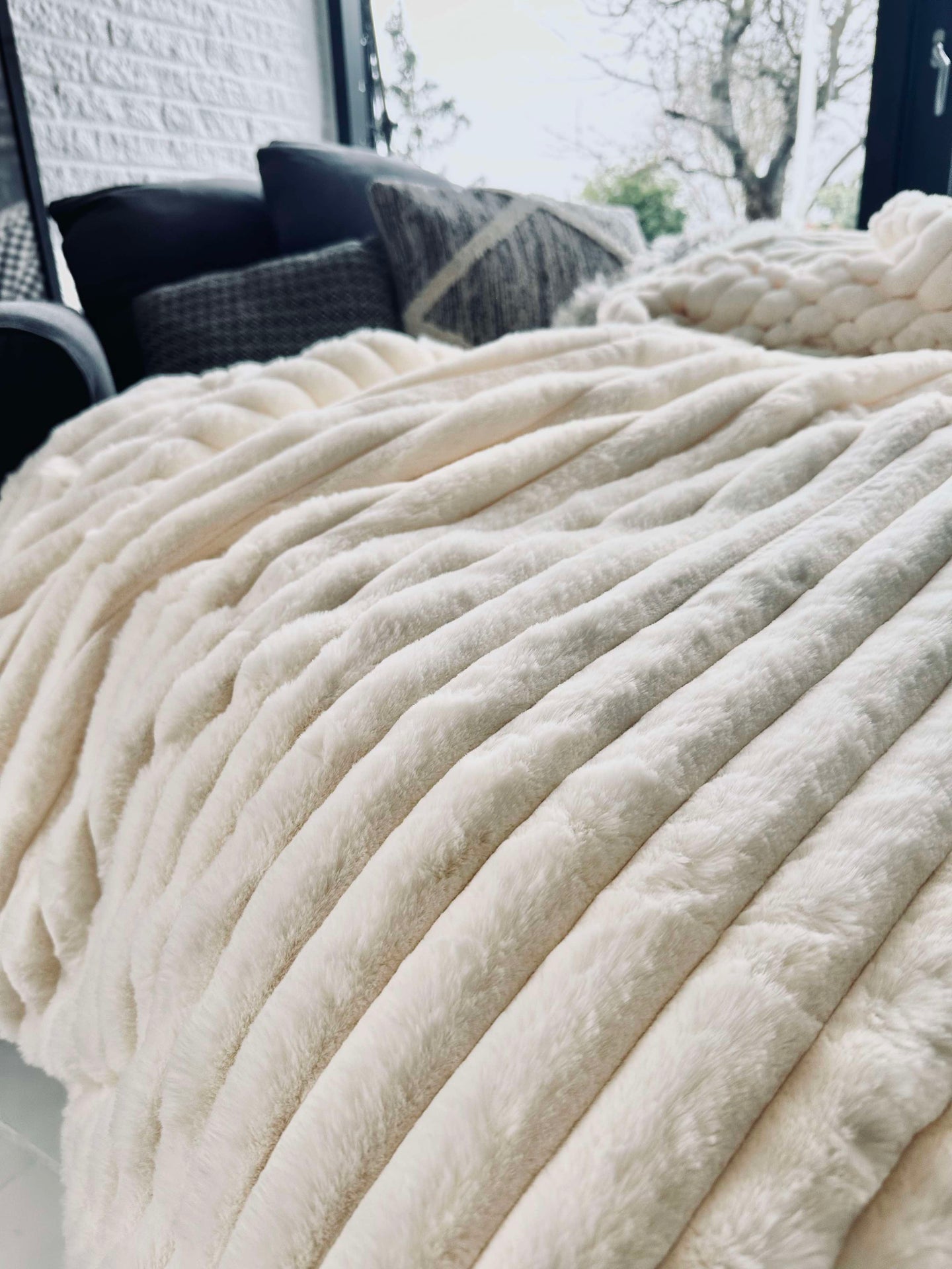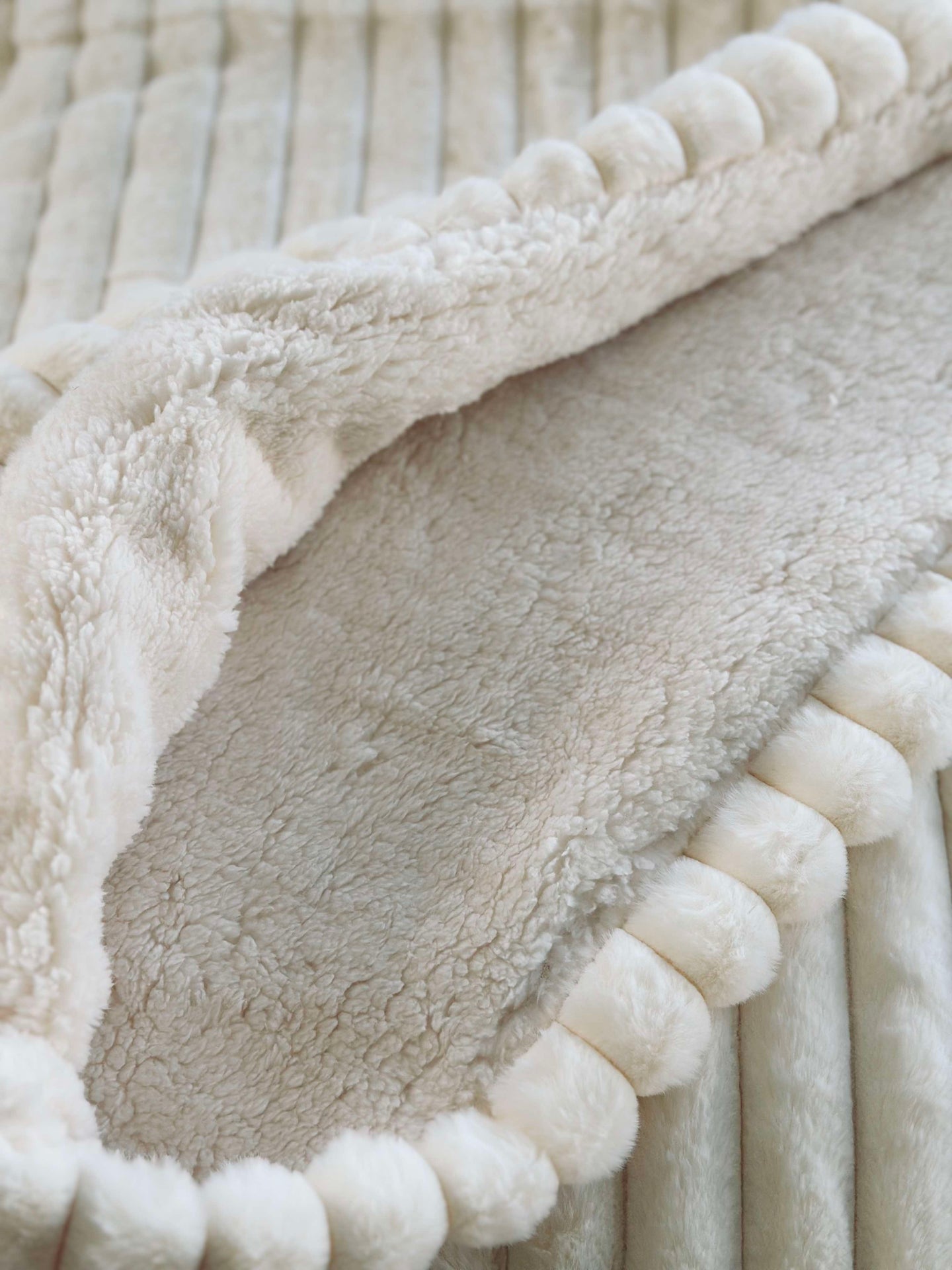 - Färgen på sängetäcket är varm vit