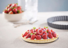 Vår tærteform med beläggning har en unik Goldflon non-stick beläggning. Denna innovativa beläggning förhindrar att bröd fastnar på formen vilket gör bakningen smidigare och mindre tidskrävande. Goldflon beläggningen gör inte bara undanröjandet av klibbiga rester enklare, men bidrar även till en jämnare värmefördelning för perfekt tillagade bakverk varje gång.