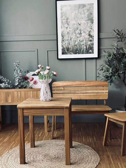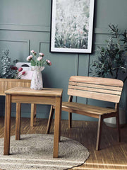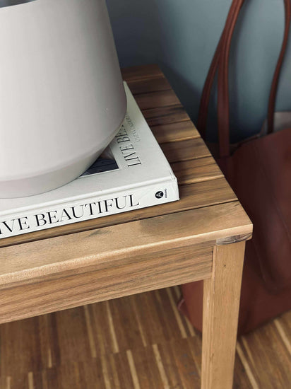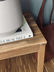 Oljat akacieträ ger skammeln en robust och naturlig känsla, samtidigt som det skyddar träet mot fukt och slitage. Detta materialval säkerställer att skammeln behåller sin skönhet och funktionalitet över tid. Akacieträets naturliga mönster och färgvariationer skapar en varm och inbjudande atmosfär, vilket gör det till ett utmärkt val för olika inredningsstilar.