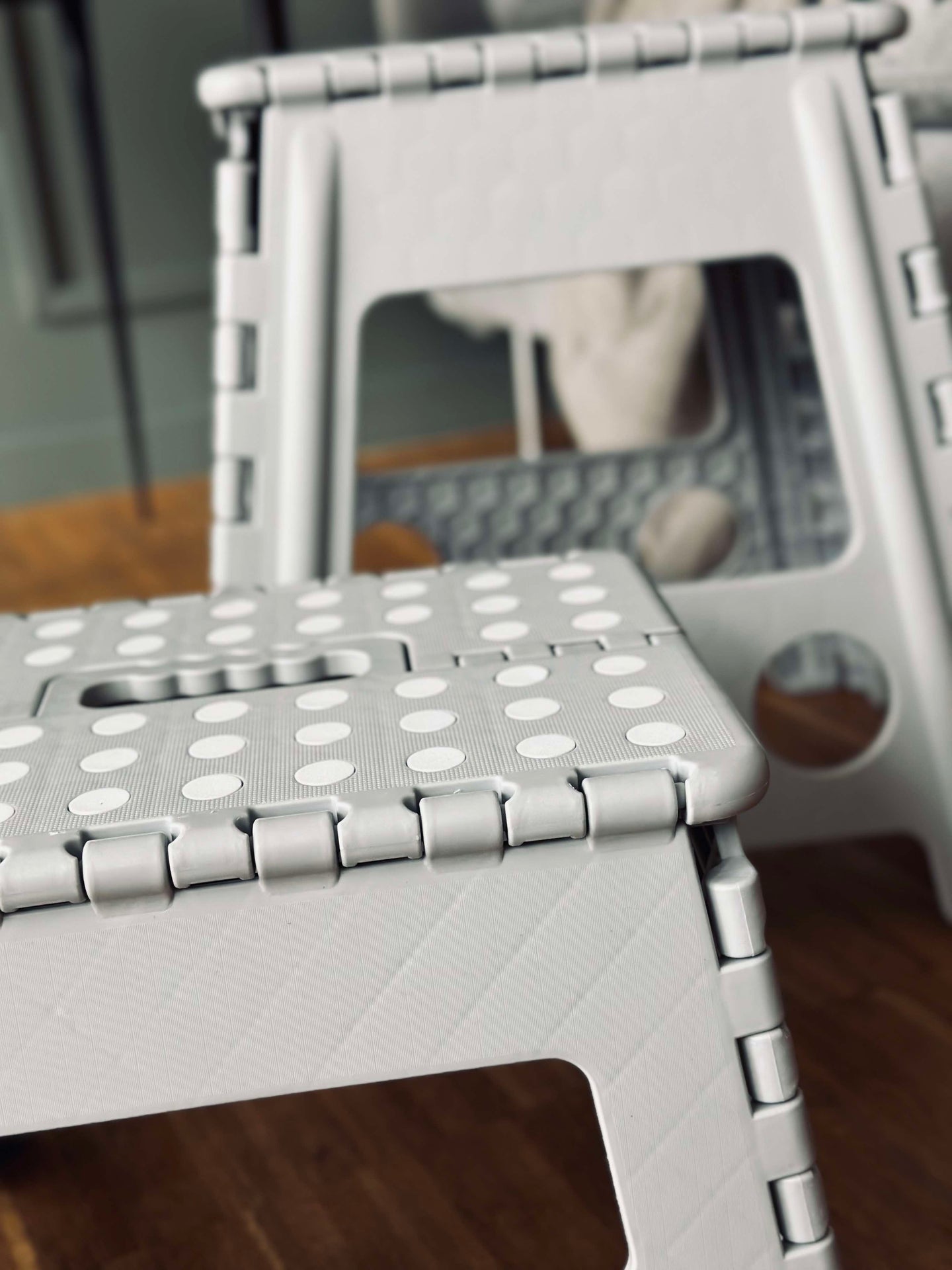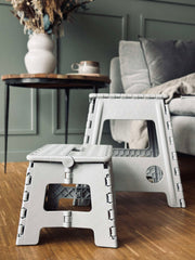 Behöver du en praktisk lösning för vardagliga uppgifter? Den hopfällbara pallen ger stabilitet och säkerhet samtidigt som den är enkel att förvara. Utmärkt för att nå höga hyllor eller som en extra sittplats. Den underlättar din vardag utan att ta upp mycket plats.