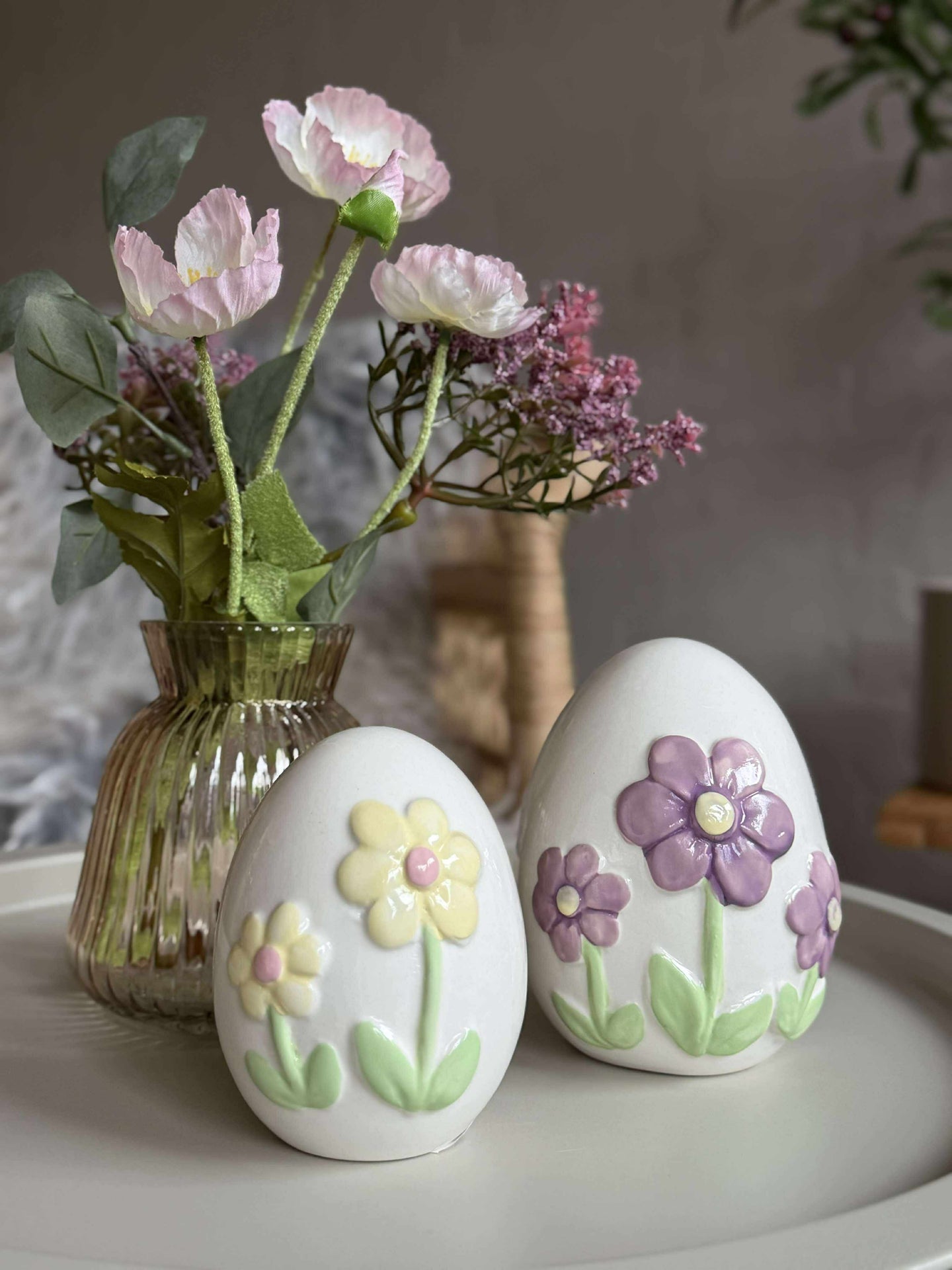 Dekorationsegg i keramik erbjuder en tidlös charm som passar in i alla hem. Materialet ger en solid och hållbar känsla, samtidigt som det erbjuder en mjuk estetik. Keramikens naturliga ton och textur skapar en harmonisk atmosfär och kan enkelt kombineras med andra påskdekorationer. Dessutom är keramik lätt att rengöra och underhålla, vilket gör det praktiskt för säsongens firande.