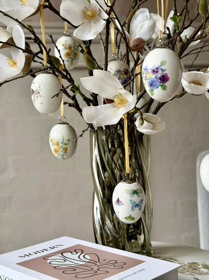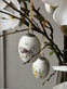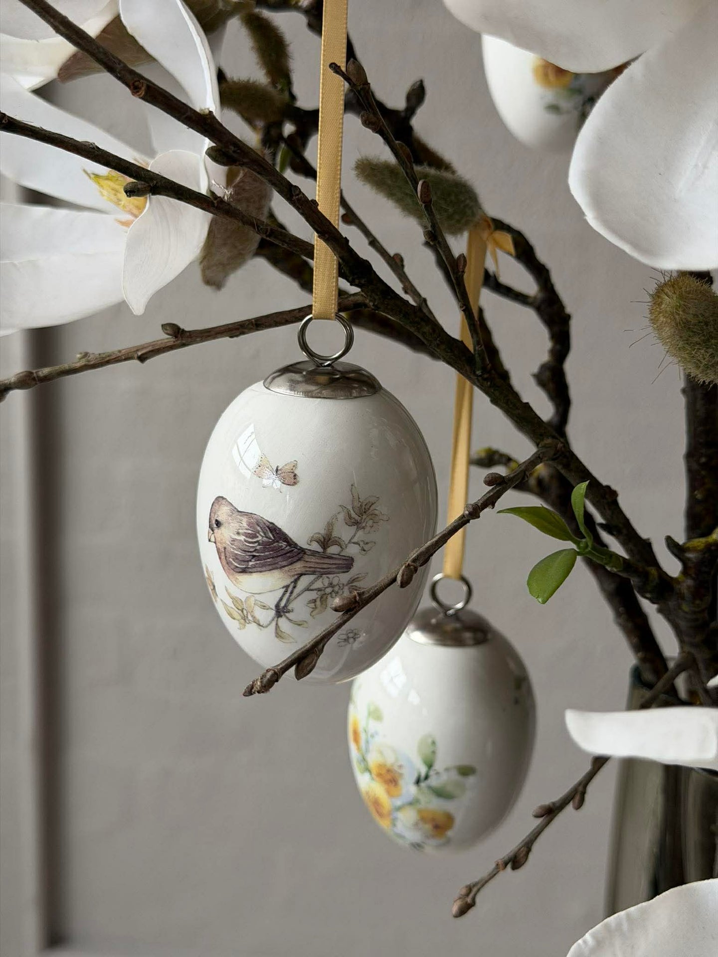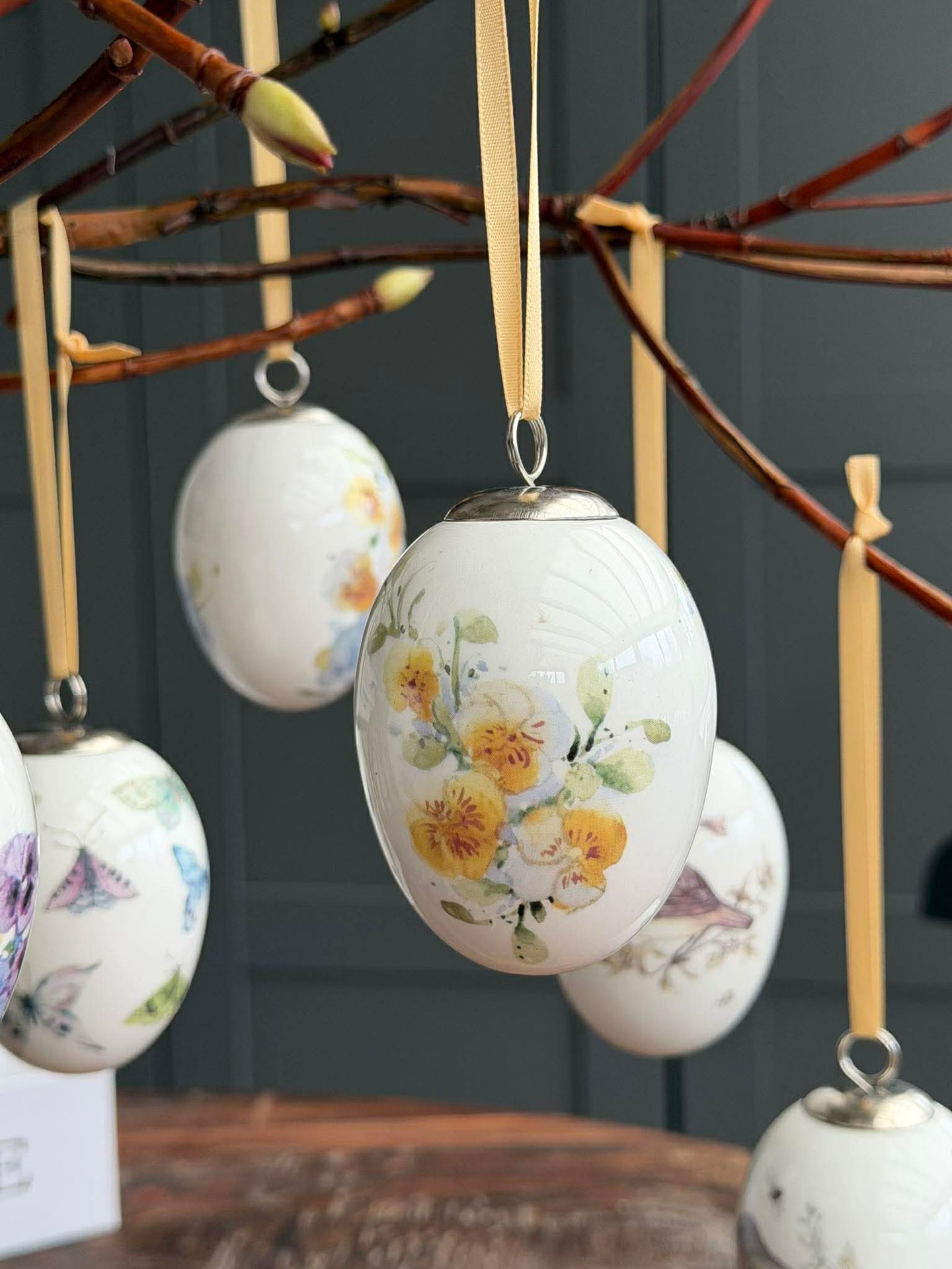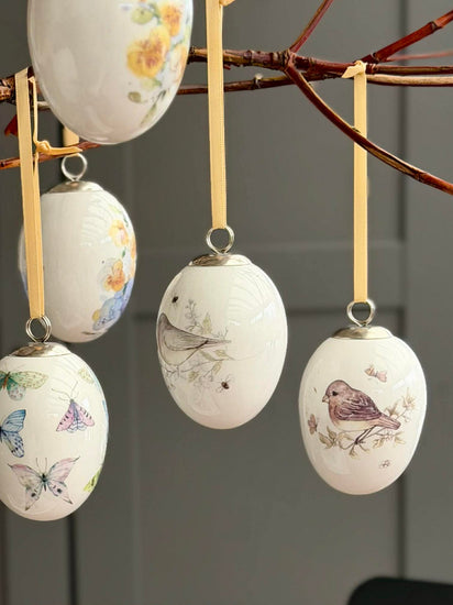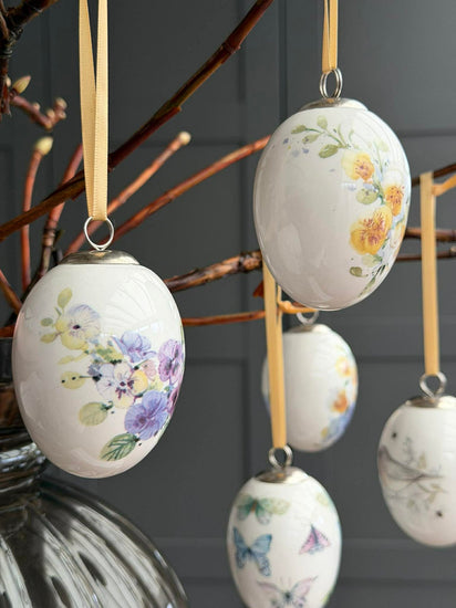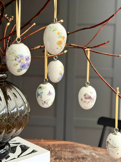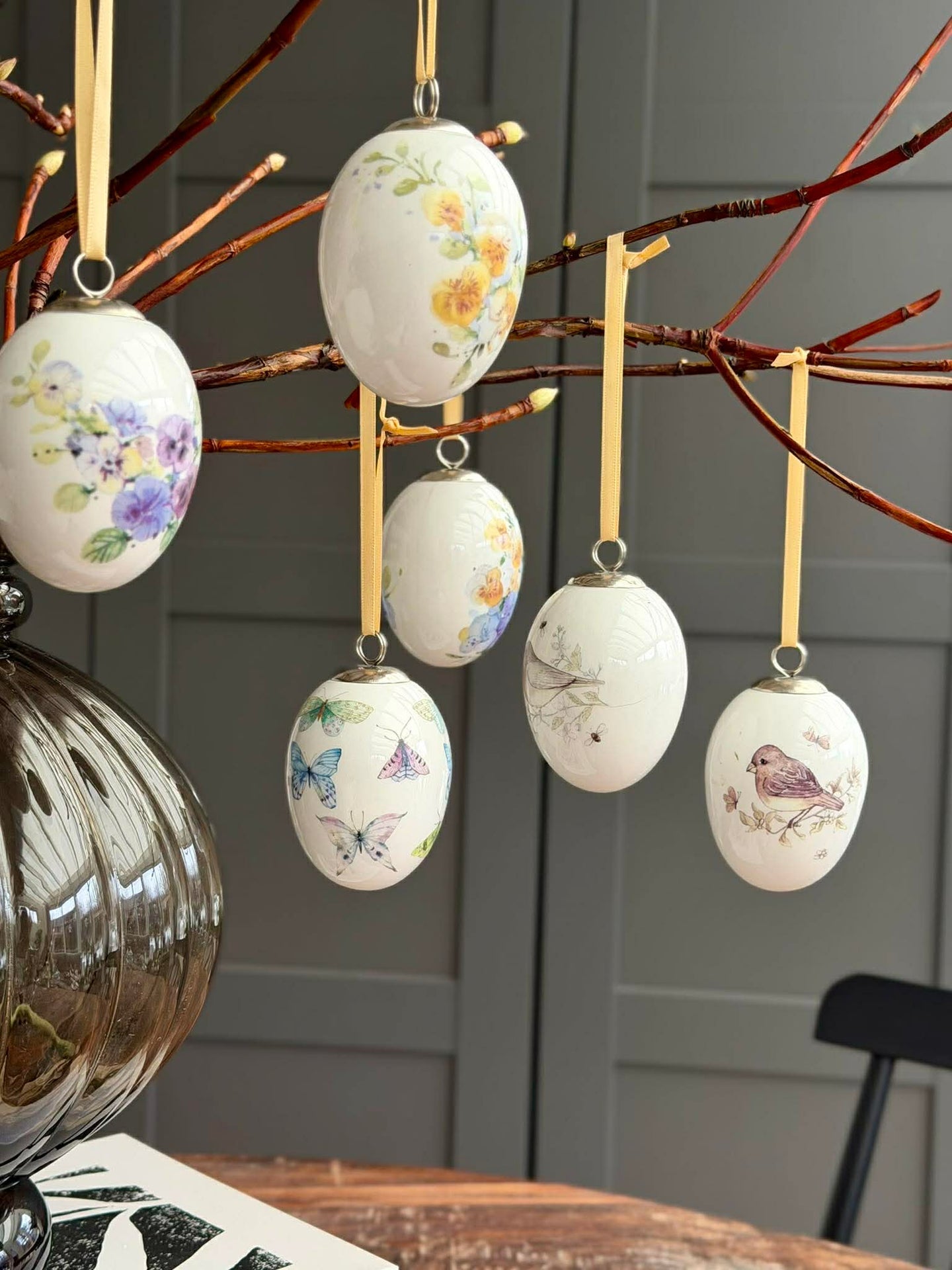 Porslinspåskägg kan både hängas upp eller placeras som en del av din dekoration, beroende på vilket uttryck du vill ha. Använd porslinspåskägg ensam för en lugn look eller kombinera dem med annat påskpynt för en mer livfull dekoration.
