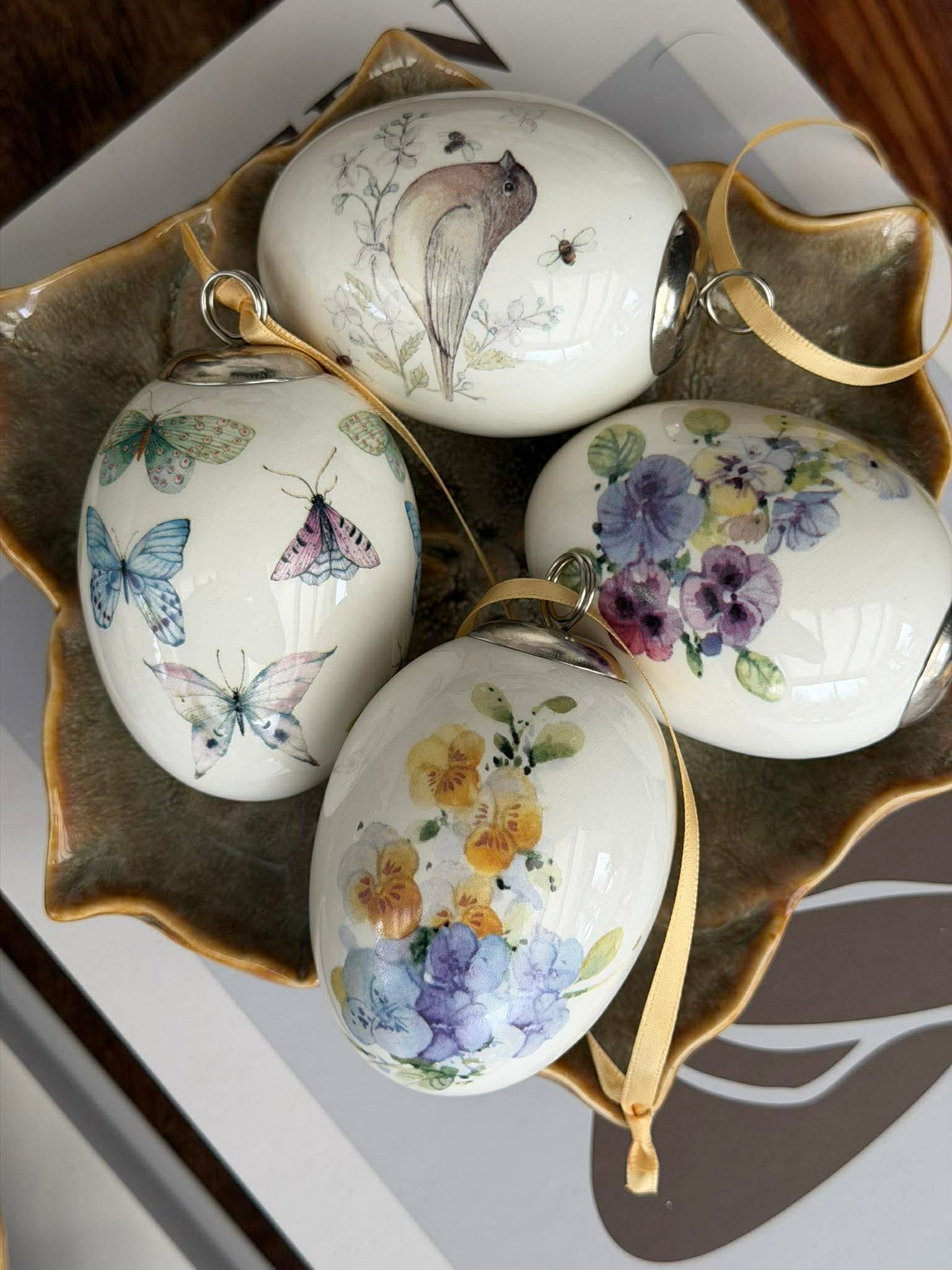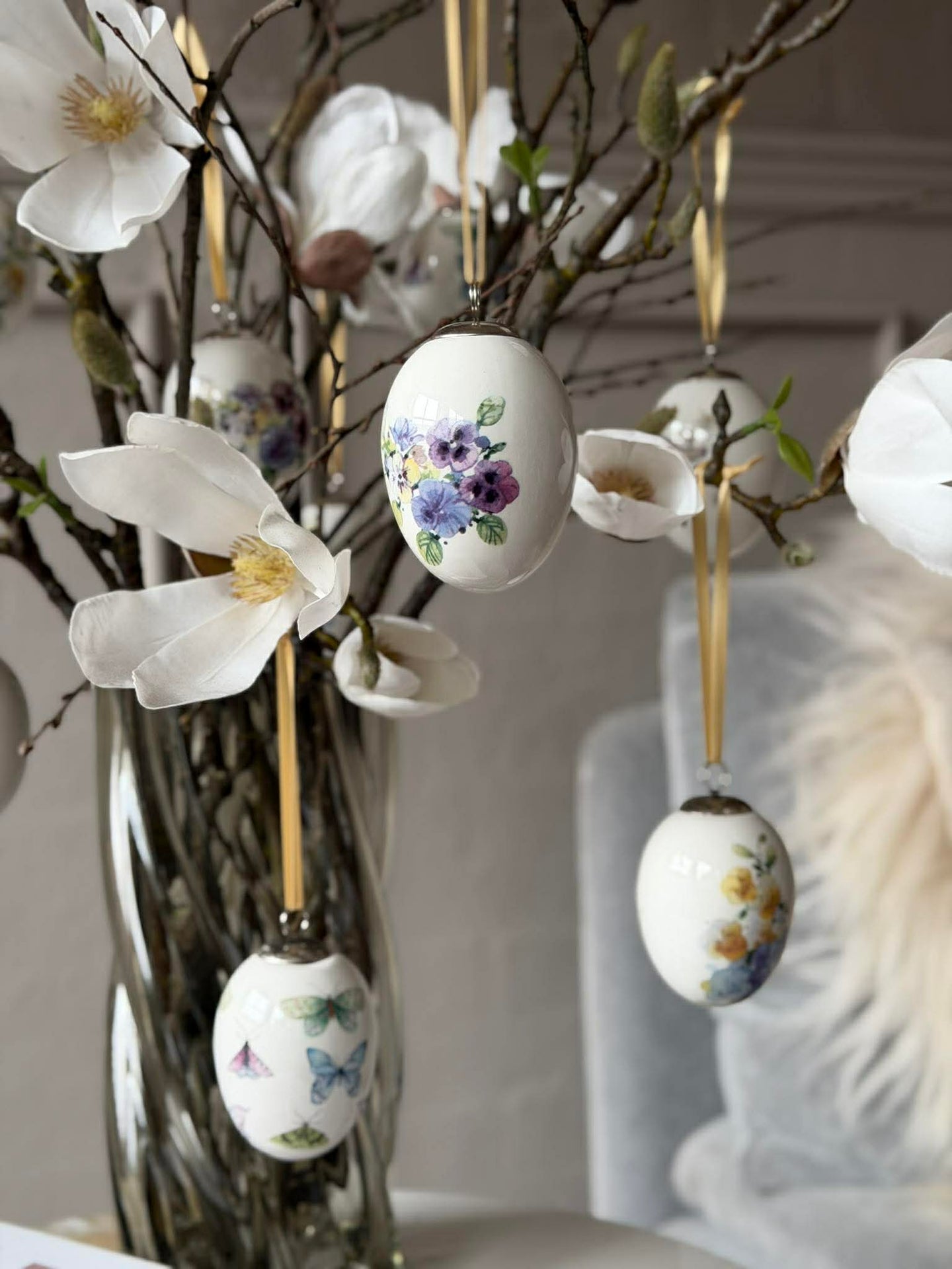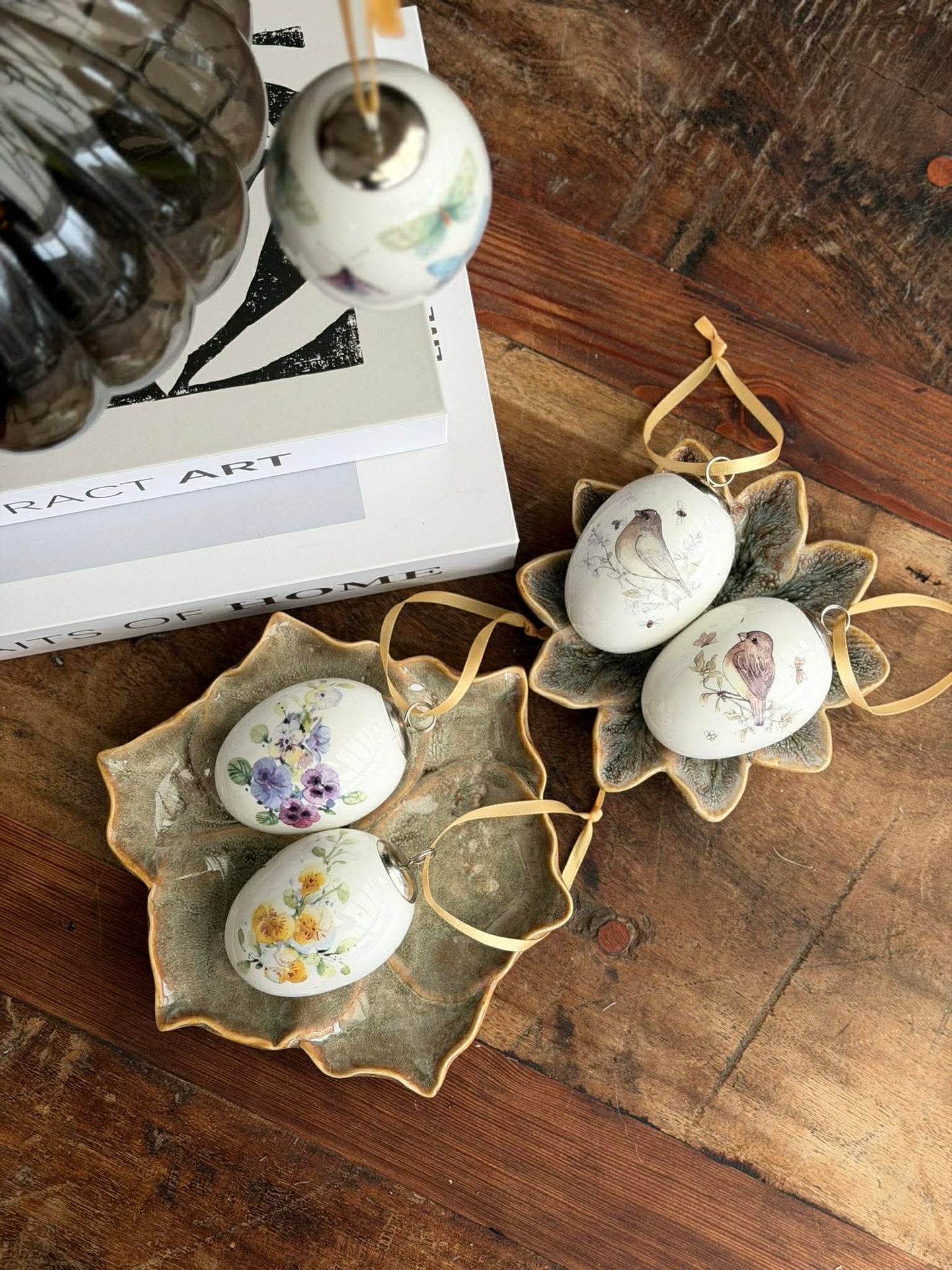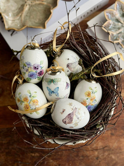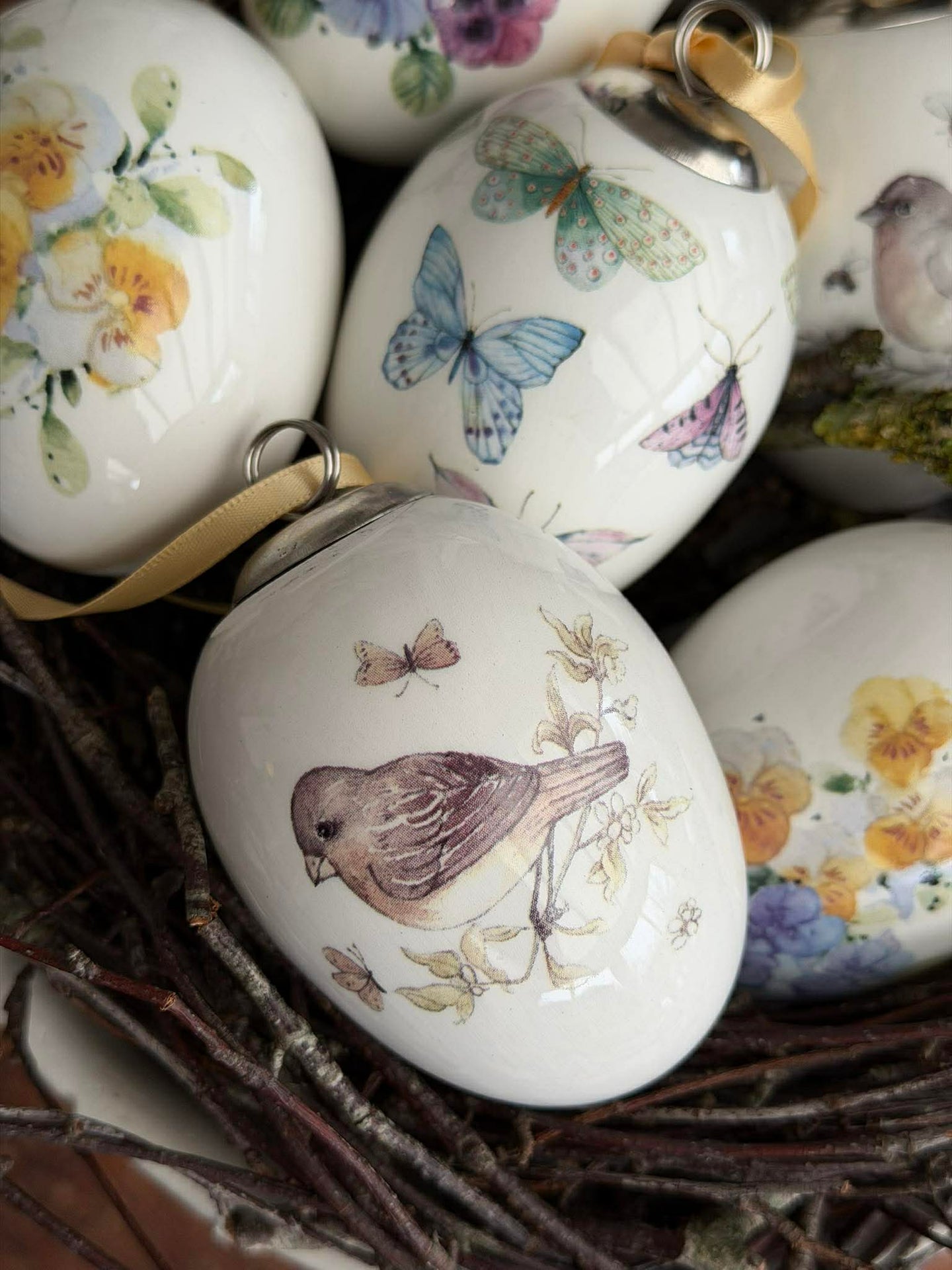 Porslinspåskägg kan både hängas upp eller placeras som en del av din dekoration, beroende på vilket uttryck du vill ha. Använd porslinspåskägg ensam för en lugn look eller kombinera dem med annat påskpynt för en mer livfull dekoration.