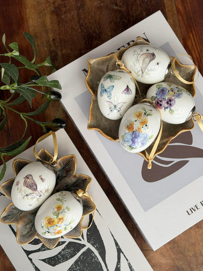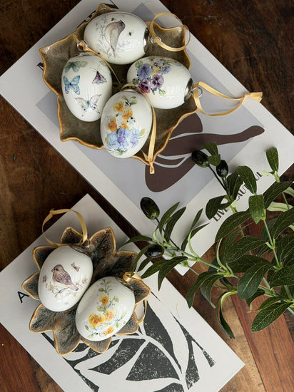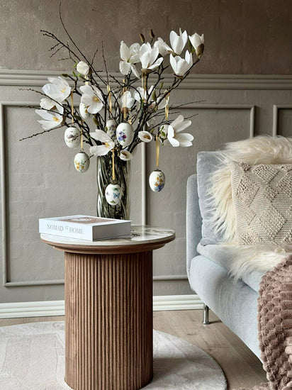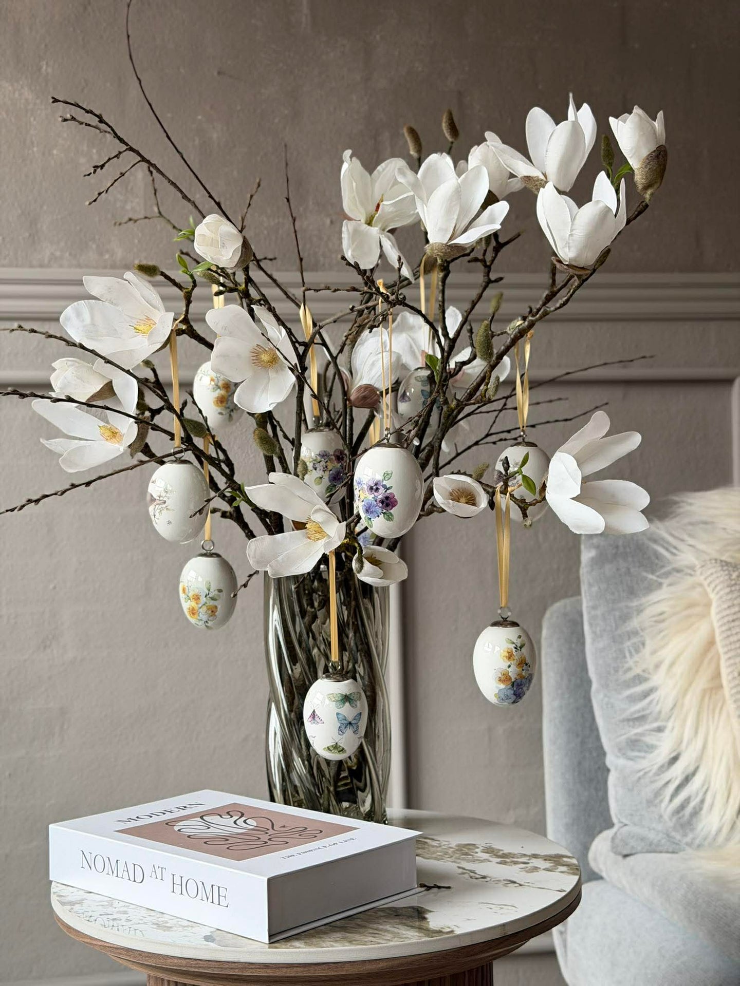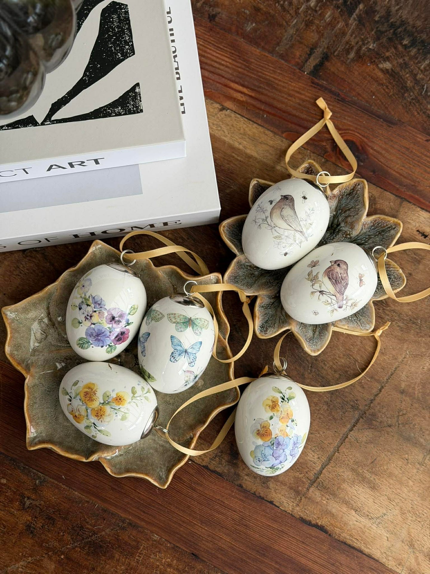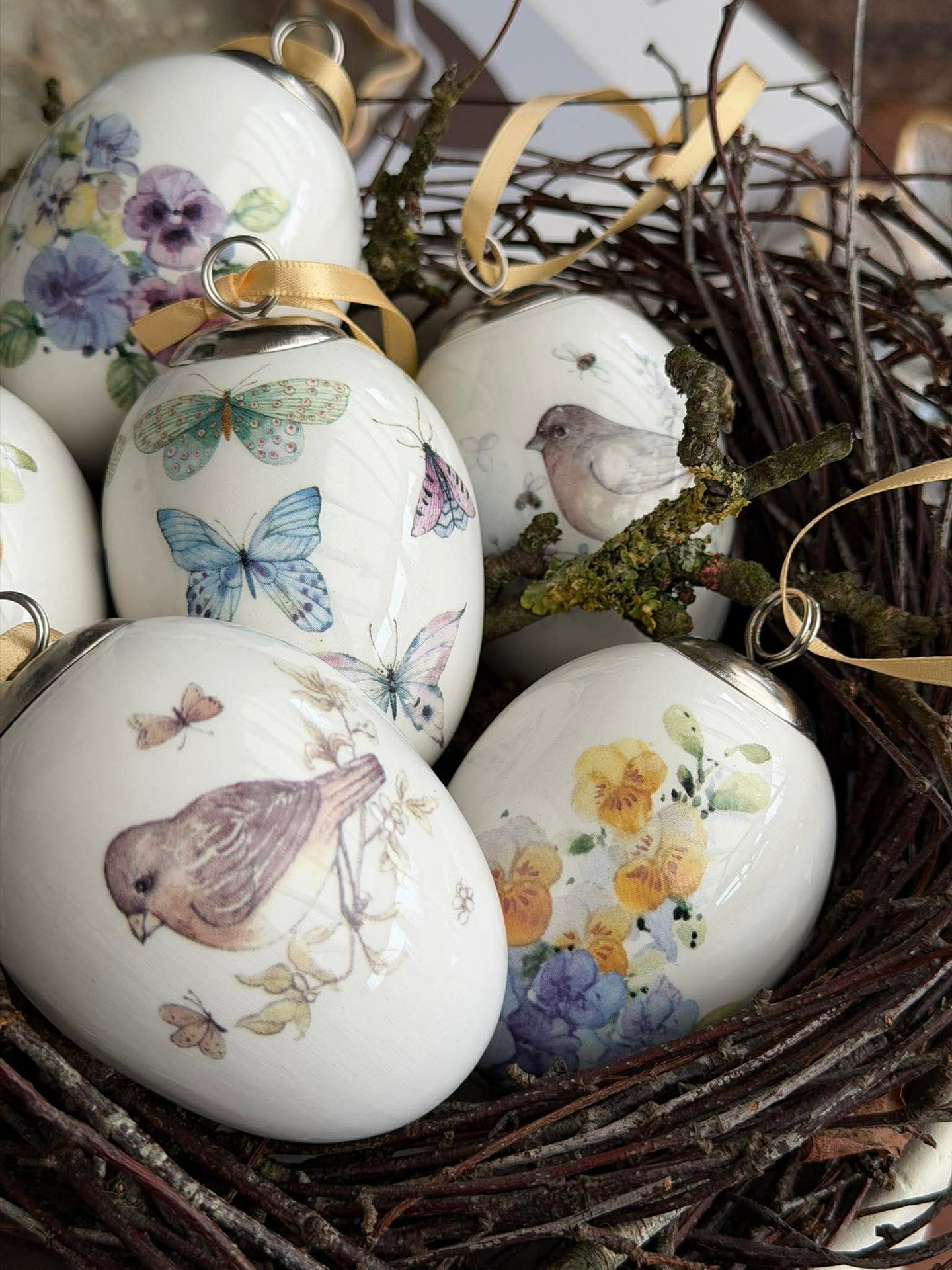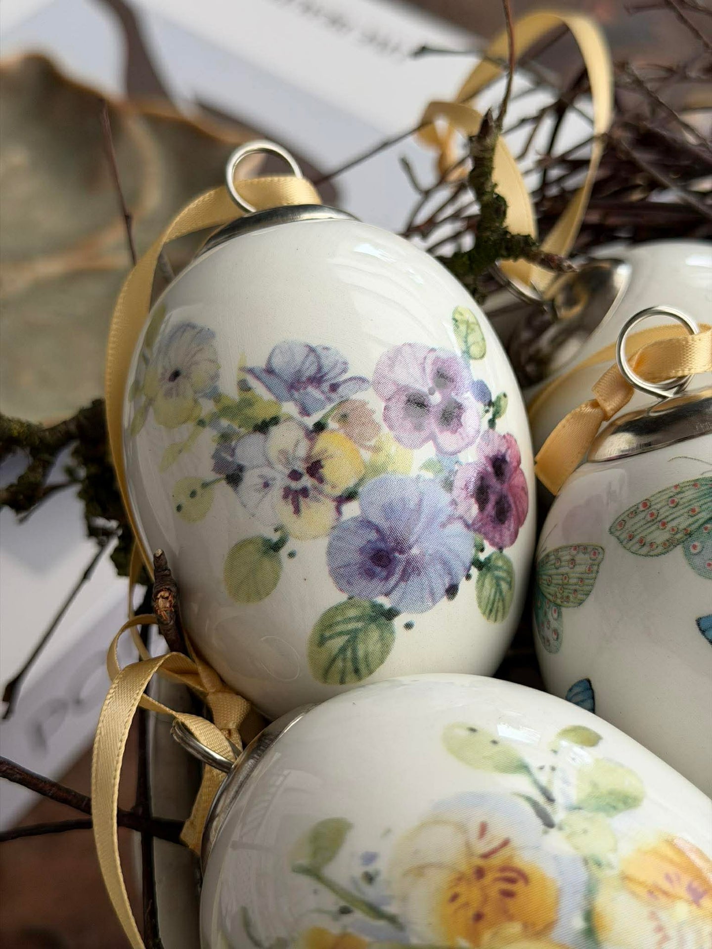 Porslinspåskägg kan både hängas upp eller placeras som en del av din dekoration, beroende på vilket uttryck du vill ha. Använd porslinspåskägg ensam för en lugn look eller kombinera dem med annat påskpynt för en mer livfull dekoration.