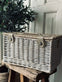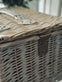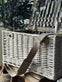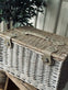 Denna picknickkorg är det perfekta tillbehöret för en avslappnad dag i parken. Den är flätad i en ljusgrå nyans och förstärkt med robusta läderdetaljer och en grå textilrem. Designen är klassisk och passar utmärkt för familjer och utomhusentusiaster som uppskattar traditionell picknick-estetik.