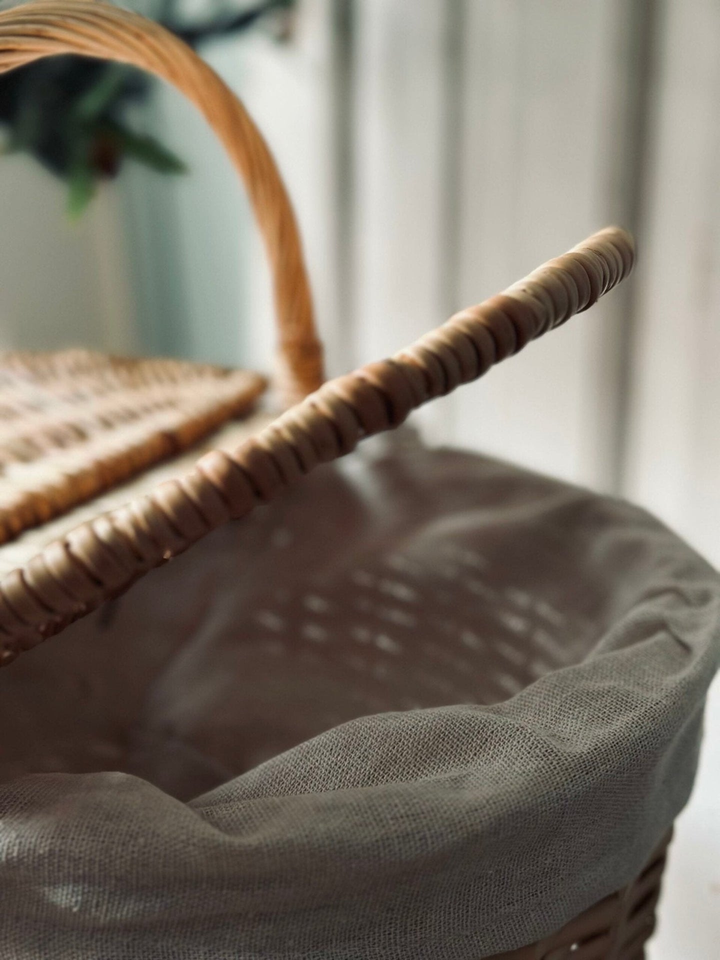 Denna picknickkorg är tillverkad av flätad pil, vilket ger en naturlig och rustik känsla som harmoniserar med olika inredningsstilar. Materialet är både hållbart och lätt, vilket gör korgen enkel att bära med sig. Flätad pil erbjuder också god ventilation, vilket hjälper till att hålla innehållet fräscht under längre tid. Dessutom bidrar det till en tidlös estetik som passar i många sammanhang.
