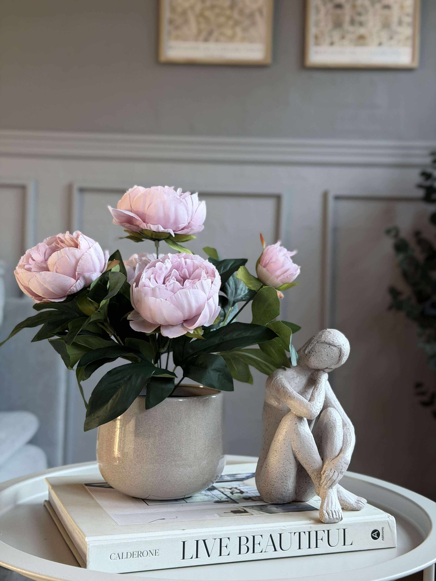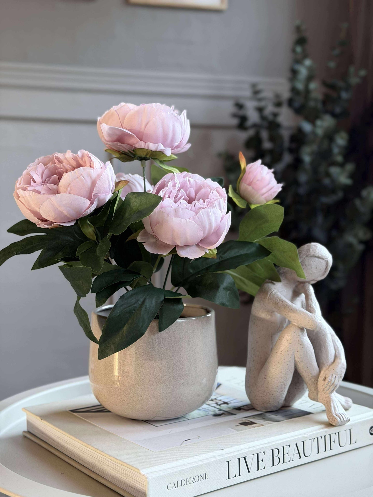 Den konstgjorda blomman levereras i en kruka, vilket underlättar direkt placering i hemmet utan behov av extra tillbehör. Krukan ger ett stabilt och säkert stöd för blomman, vilket gör att den smidigt kan placeras på olika ytor. Detta minskar behovet av ytterligare planering och gör det enkelt att förnya inredningen med minimal ansträngning.