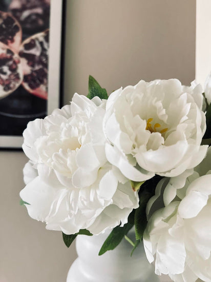 Skapa ett lugnt och harmoniskt hem med vit pion idag. Ge din inredning en sofistikerad touch utan besvär med underhåll. Upplev skönheten och känslan av välbefinnande med denna naturtrogna plastblomma.