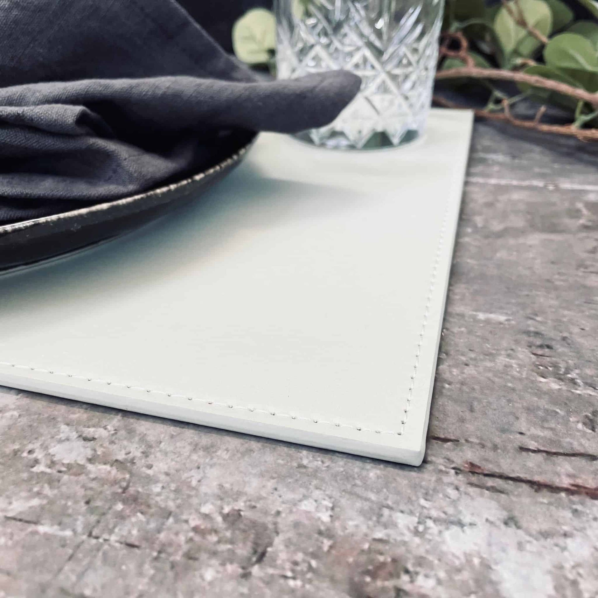 Denna bordsmatta är tillverkad av konstläder, vilket ger den en lyxig och sofistikerad känsla. Konstläder är ett slitstarkt material som är enkelt att rengöra, vilket gör denna bordsmatta både praktisk och stilfull för ditt kök. Dessutom bidrar konstlädret till en modern och trendig inredningsstil.