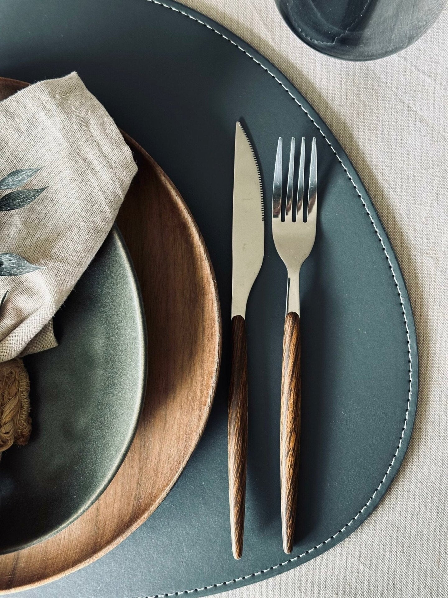 Vår dækkeserviet erbjuder en attraktiv struktur som imiterar äkta skinn, vilket ger en sofistikerad touch till din dukning. Detta bidrar inte bara till en estetiskt tilltalande miljö, utan skyddar även ditt bord från värme, fläckar och repor. Dessutom är den lätt att rengöra och passar perfekt för både vardagliga måltider och speciella tillfällen.
