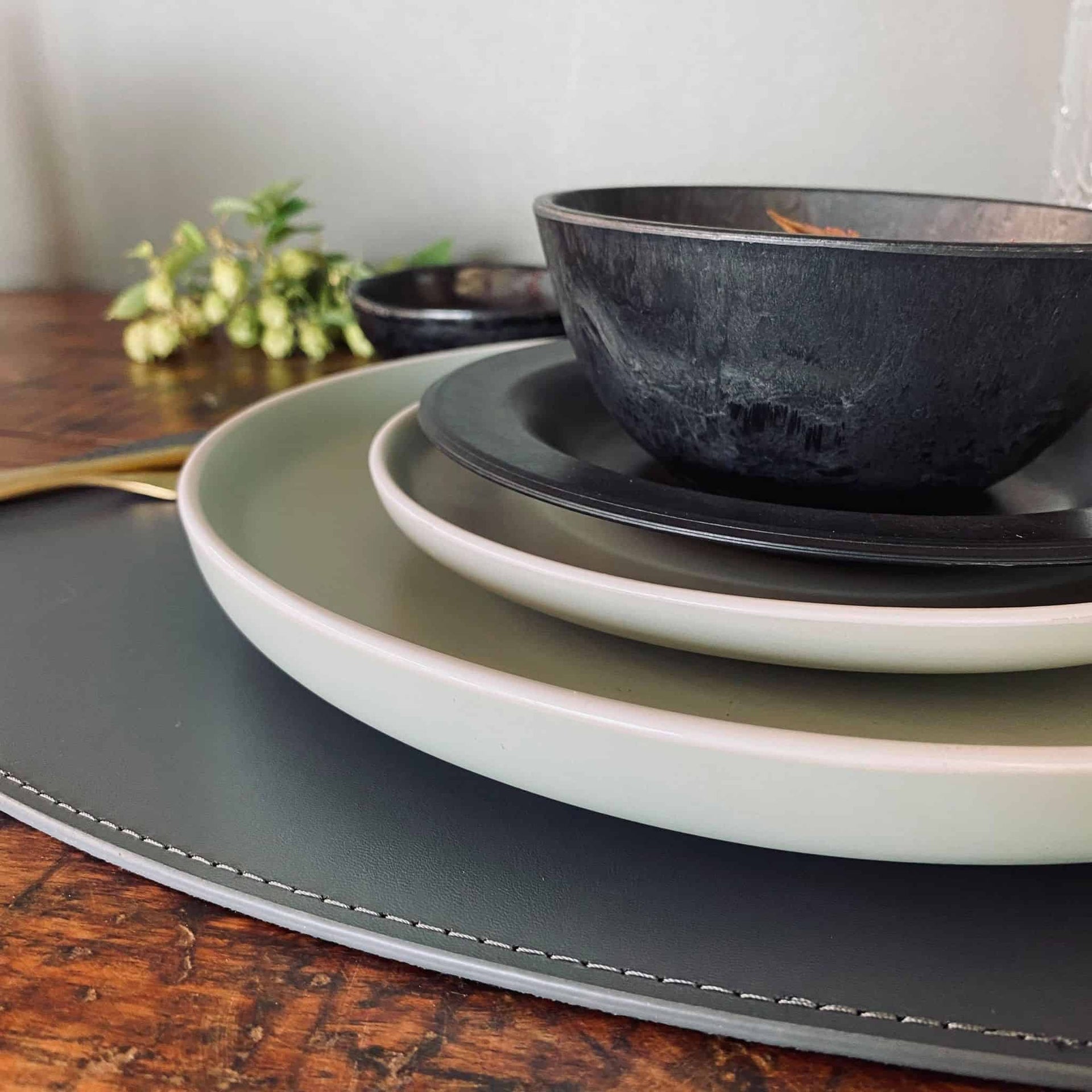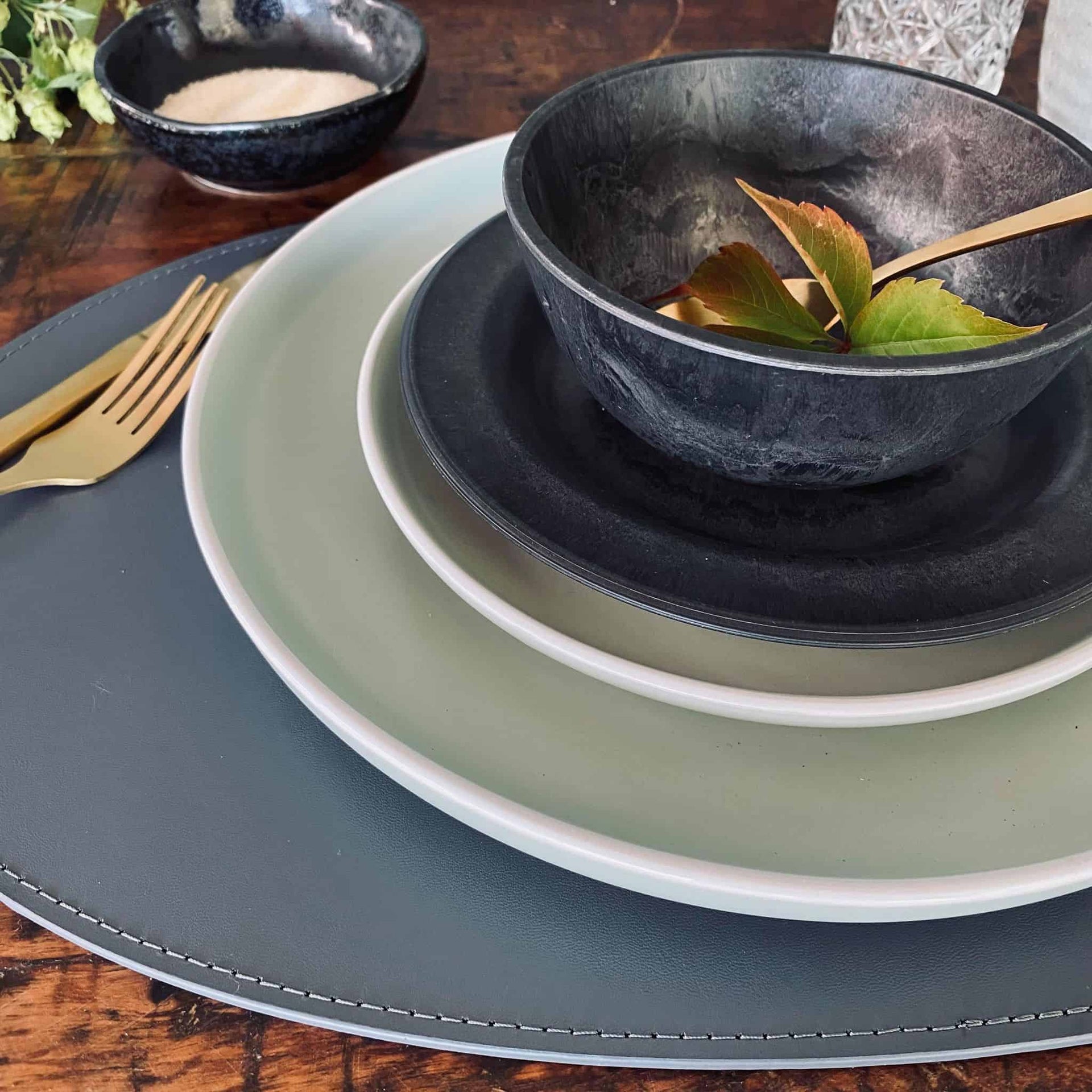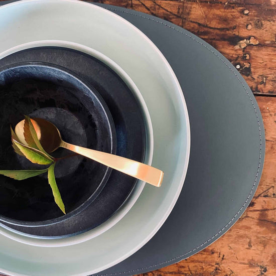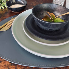 Vårt bordsunderlägg är tillverkat i vackert grått läder, vilket ger det en unik och sofistikerad känsla. Lädret är inte bara estetiskt tilltalande, utan också extremt hållbart och lätt att rengöra. Detta bordsunderlägg förhöjer inte bara din inredning, utan ger dig också en praktisk yta att placera dina bordsartiklar på.
