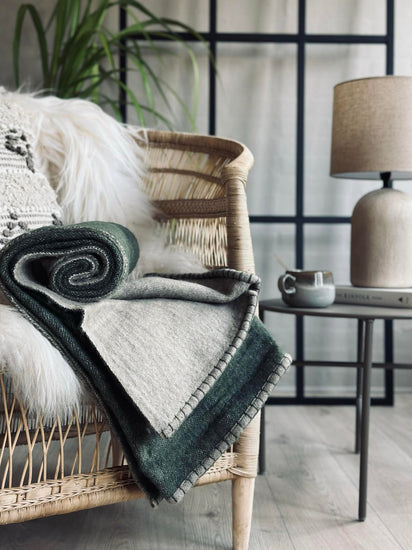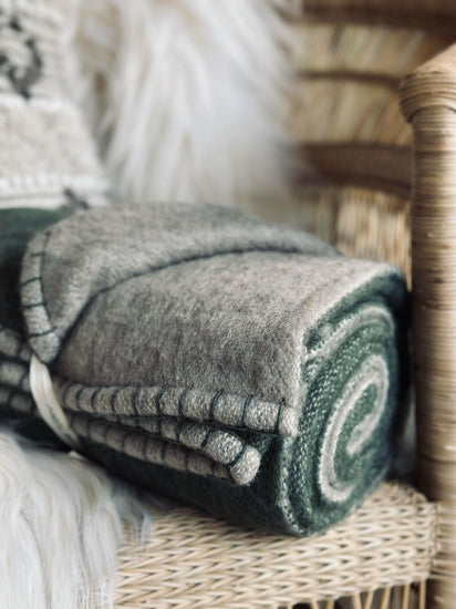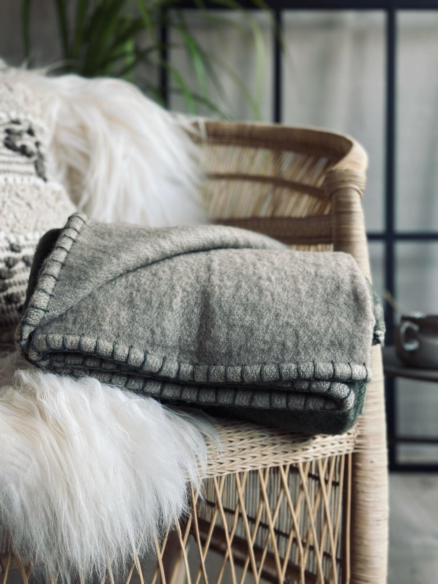 När hösten sänker temperaturen i ditt vardagsrum blir en varm pläd en uppskattad följeslagare. Pläd 100 % ull - Grå / Oliv erbjuder naturlig värme och komfort, vilket gör den till en viktig del av ditt hem för kyliga kvällar.
