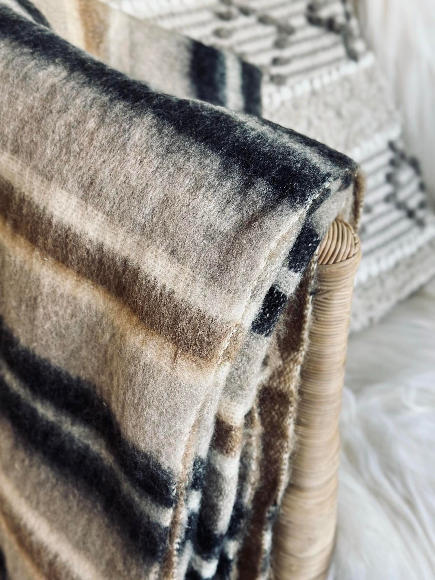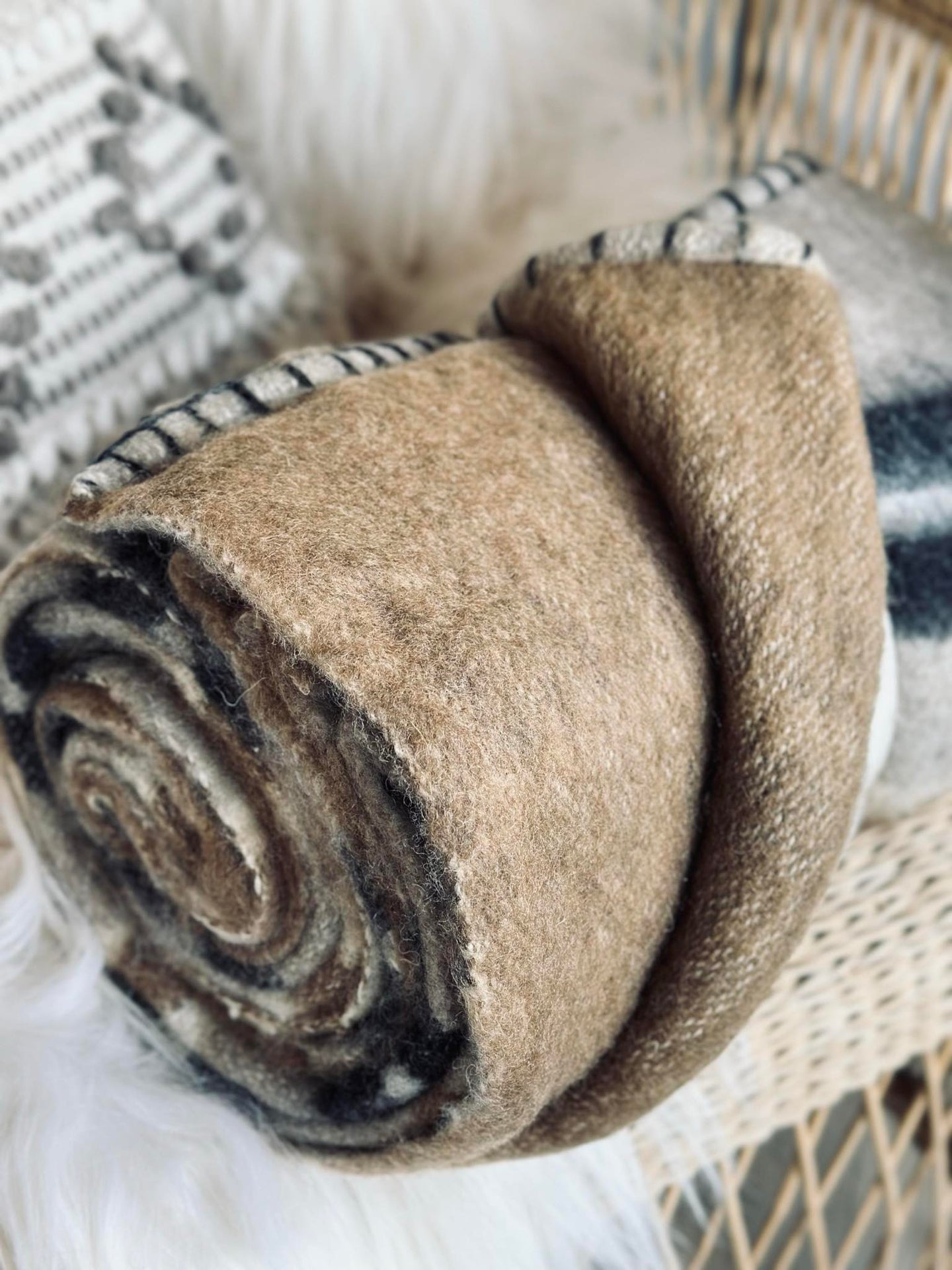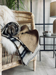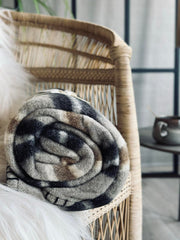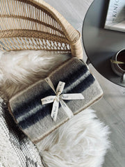 Pläd 100 % ull - Taupe rand