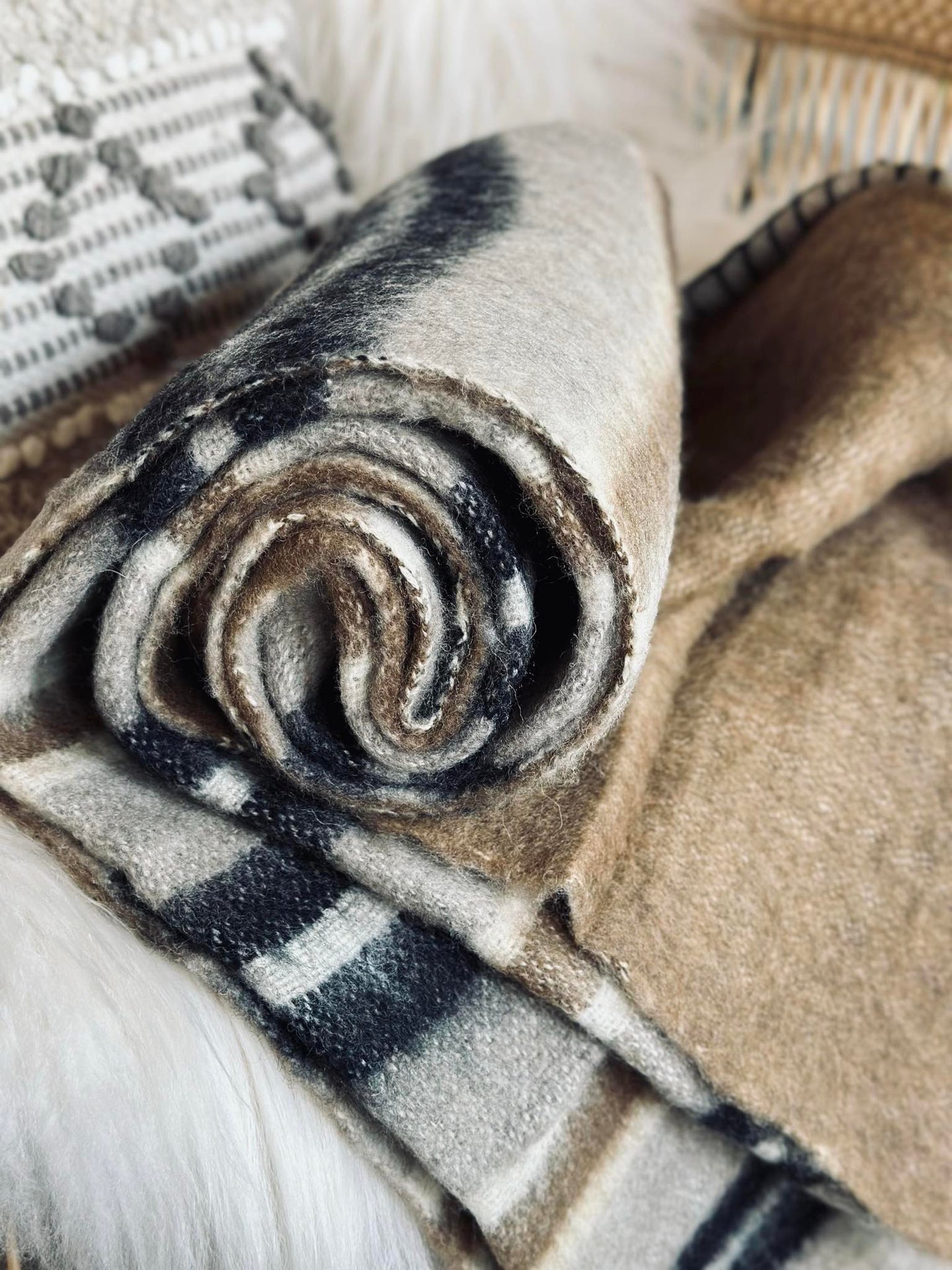 Denna ullpläd, tillverkad av 100 % äkta ull, erbjuder överlägsen värme och mjukhet som förbättrar din vardagsrumsupplevelse. Ullens naturliga isoleringsförmåga hjälper till att reglera kroppstemperaturen, vilket skapar en behaglig och inbjudande miljö. Dessutom är ull ett hållbart material som andas, vilket gör pläden både funktionell och långvarig. Den är ett utmärkt val för dem som värdesätter kvalitet och komfort i sin inredning.