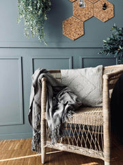 Skapa en varm och inbjudande atmosfär i ditt hem med vår hållbara och eleganta pläd. Uppgradera ditt vardagsrum med en touch av sofistikerad stil och omtanke om miljön. Ge dig själv och dina gäster en mysig plats att koppla av och njuta av lugnet.