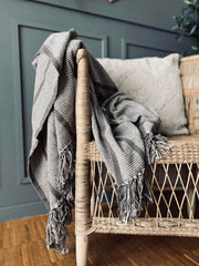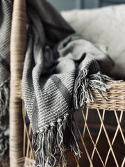 Denna pläd är tillverkad av återvunnen bomull, vilket ger den en mjuk och behaglig känsla. Återvunnen bomull bidrar till en mer hållbar produktion och minskar avfallet. Dessutom ger det pläden en unik karaktär och långvarig kvalitet, vilket gör den till en pålitlig följeslagare för mysiga kvällar hemma.