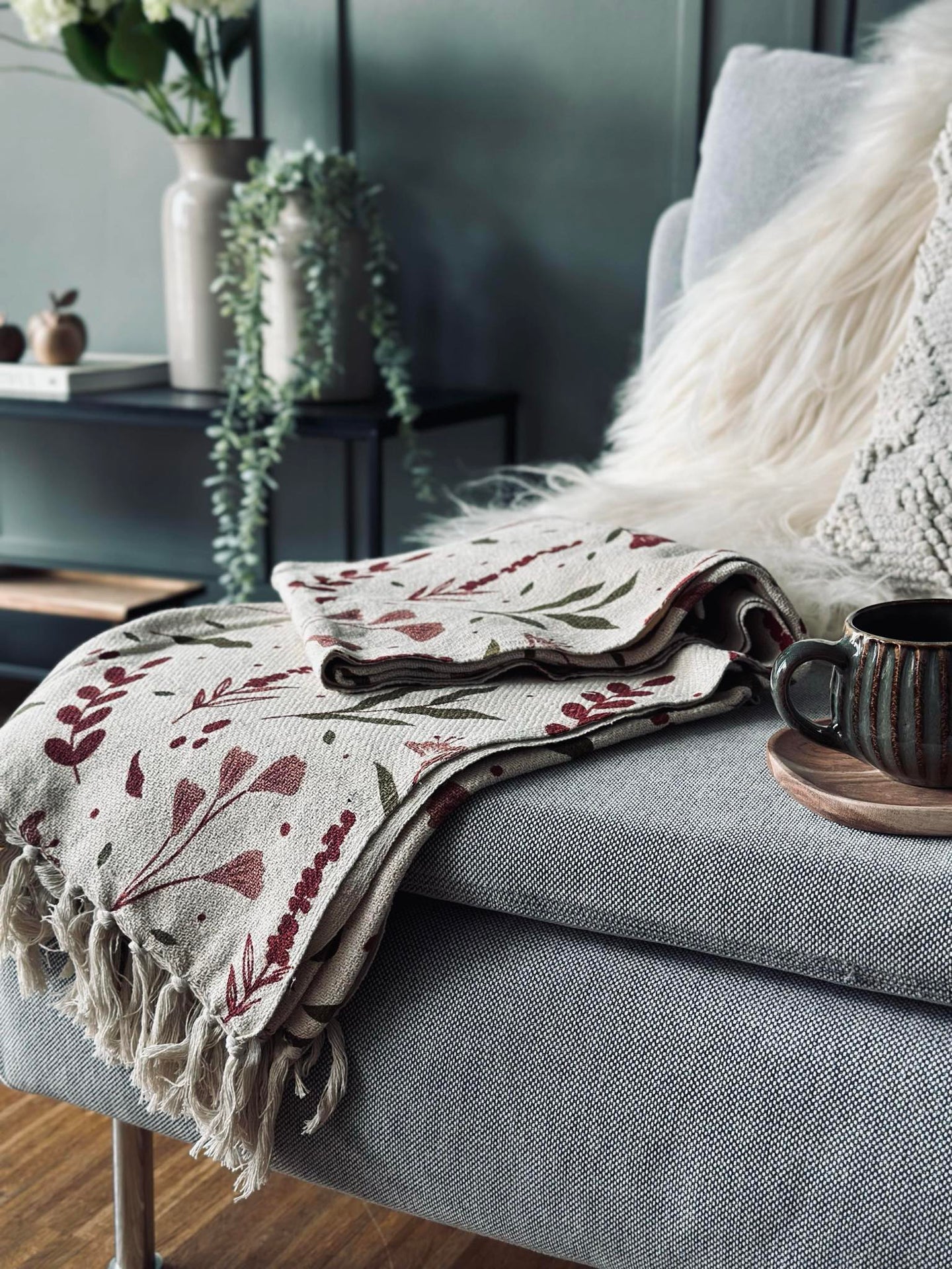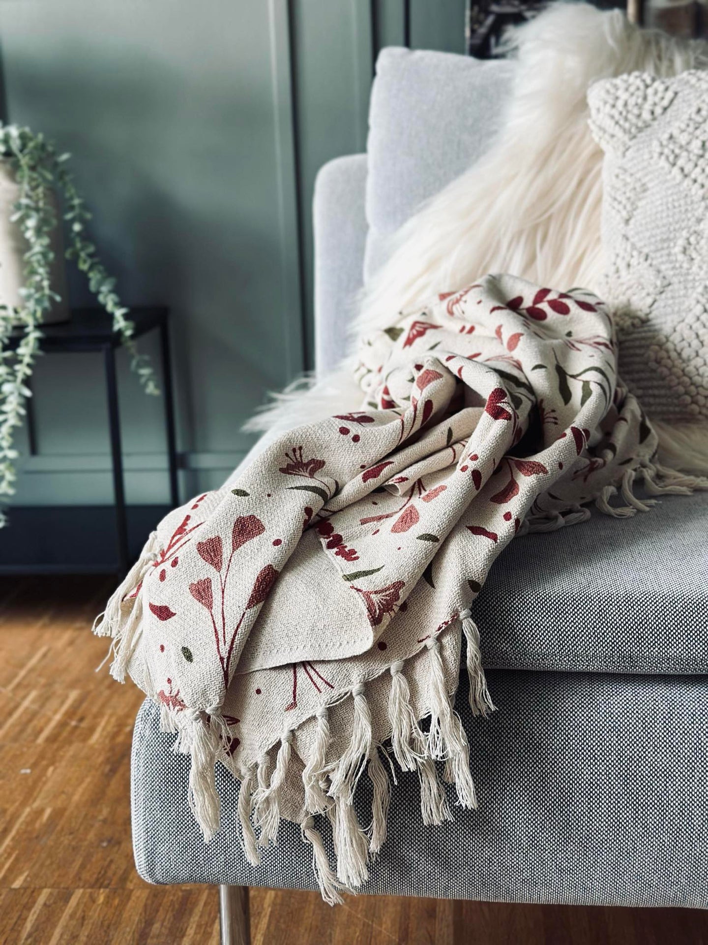 Ge ditt vardagsrum en touch av hållbarhet och stil med pläden i återvunnen bomull - Flora. Njut av varma och mysiga kvällar samtidigt som du bidrar till en bättre miljö. Investera i din komfort och planetens framtid idag!