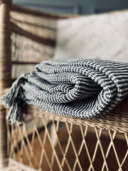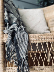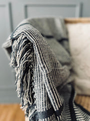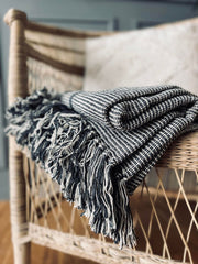 Pläd - Grå randig Återvunnen bomull