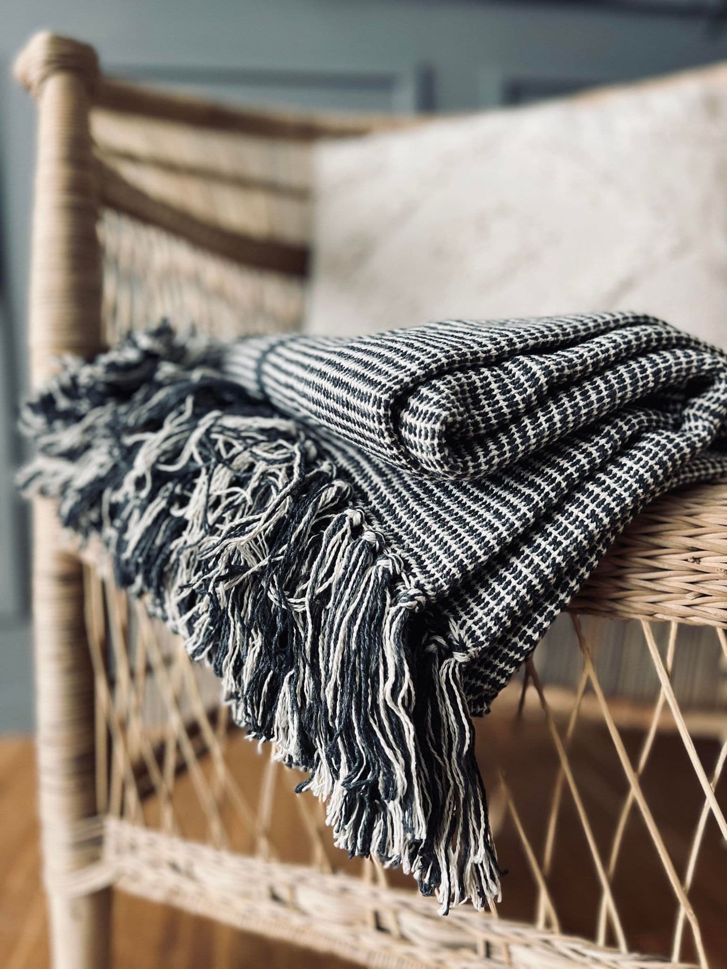 Skapa en mysig atmosfär i ditt hem med denna grårandiga återvunna bomullspläd och njut av varma och stilfulla stunder på soffan. Ge ditt hem en extra touch av ombonad känsla och gör vardagen lite mer bekväm. Våga unna dig lite extra komfort!