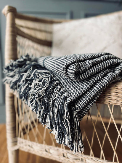 Denna pläd är tillverkad av återvunnen bomull, vilket gör den till ett utmärkt val för den miljömedvetna konsumenten. Återvunnen bomull minskar avfallet och kräver mindre energi och vatten att producera än ny bomull. Dessutom ger det återvunna materialet pläden en unik och charmig karaktär. Den är både funktionell och hållbar, vilket gör den till en viktig del av din inredning.