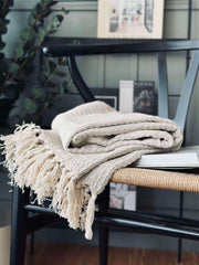 Känner du igen känslan av att vilja ha en mjuk och behaglig filt för att koppla av efter en lång dag? Med denna pläd i naturfärg kan du enkelt lägga till ett extra lager av komfort och värme i ditt hem.