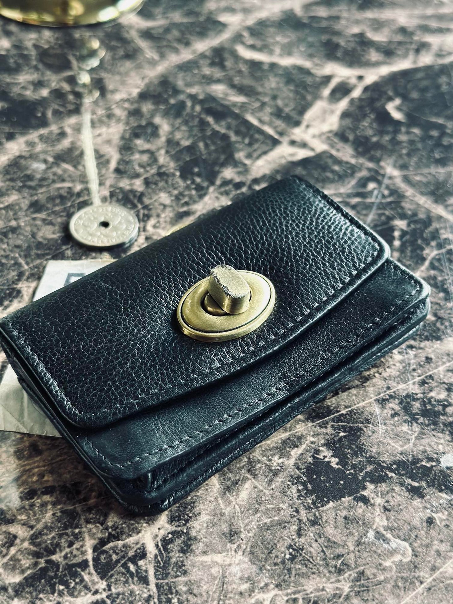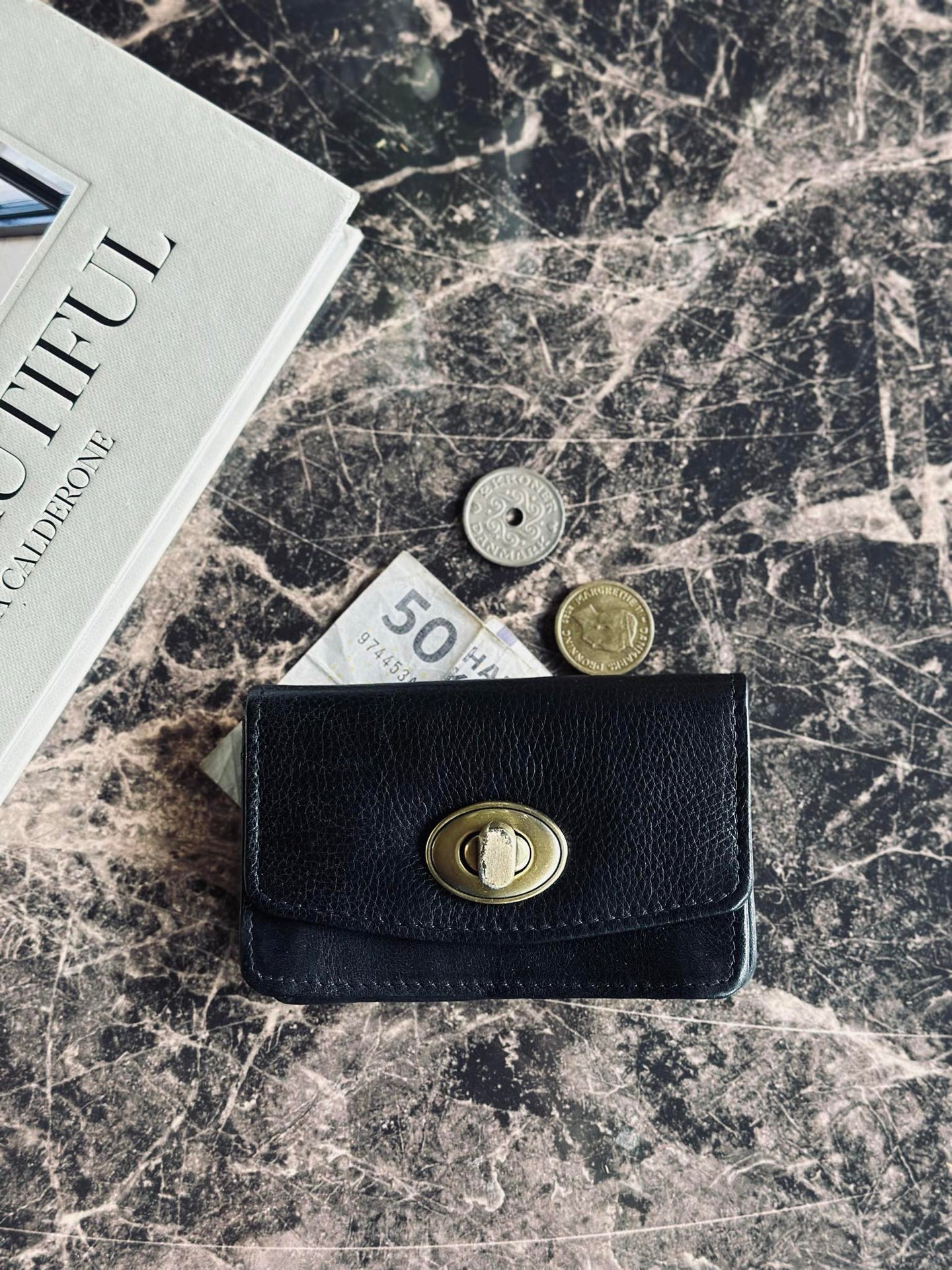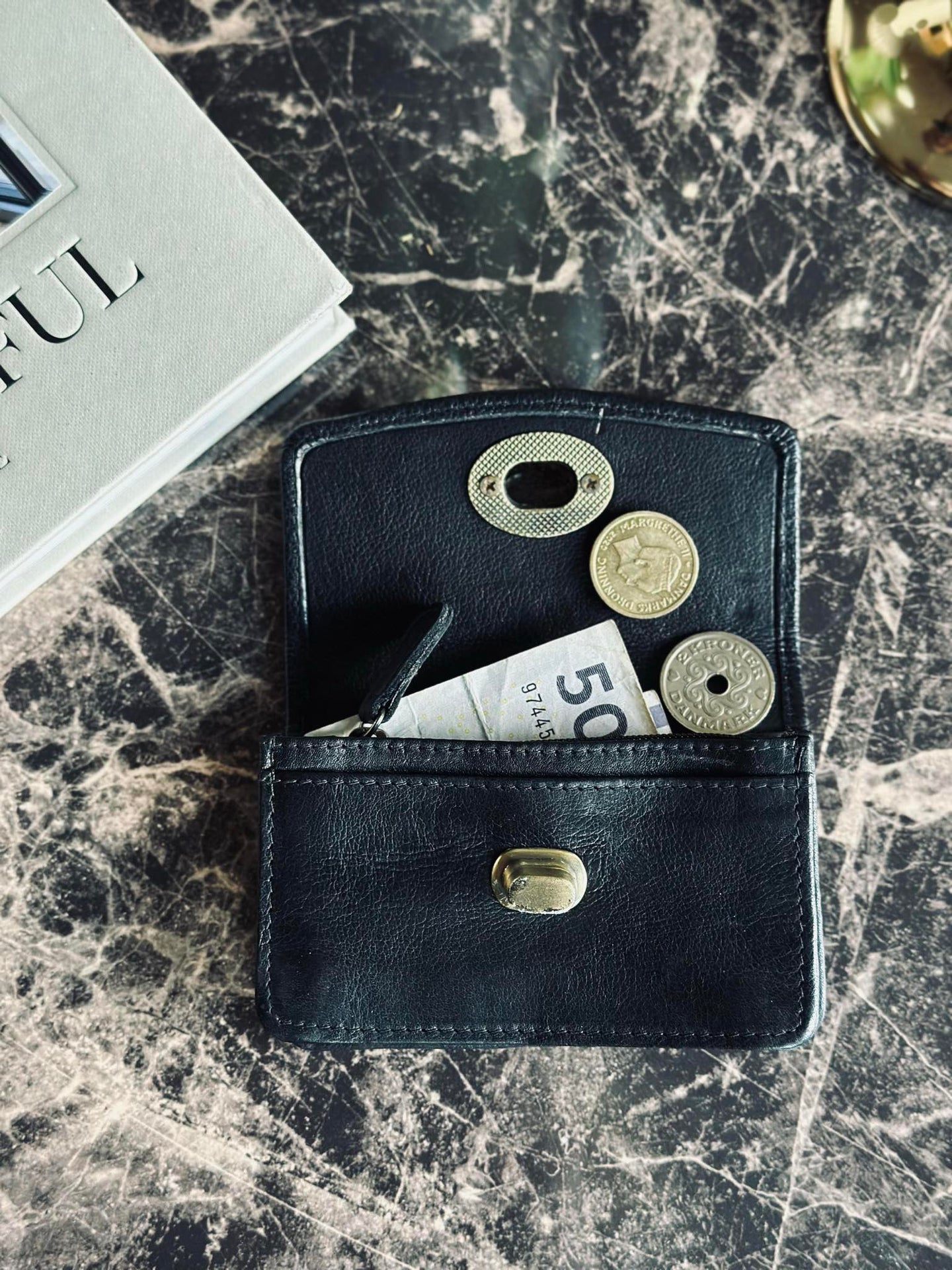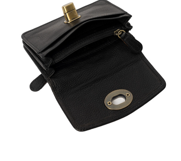 - Moa Wallet Small har ett guldfärgat lås