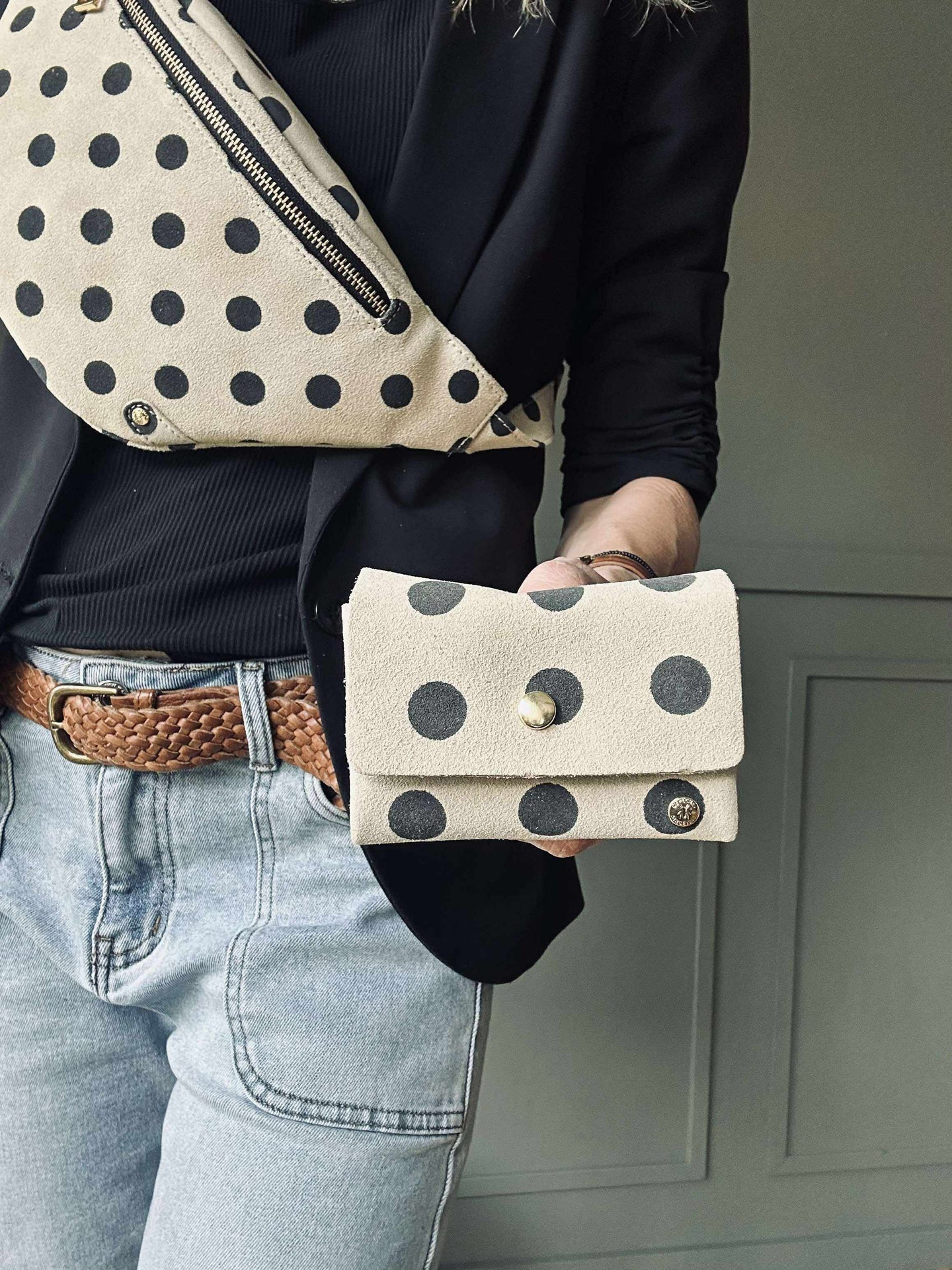 Har du tröttnat på att leta efter dina kort och kontanter i en rörig plånbok? Plånbok Svarta prickar erbjuder en praktisk och stilren lösning med välorganiserade fack och en kompakt design som passar smidigt i fickan.