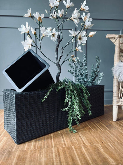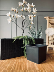 Planteringslådan har en unik svart borstad finish som ger en elegant och sofistikerad känsla till din inredning. Denna finish är inte bara estetiskt tilltalande, utan också hållbar och tålig mot väder och vind. Dessutom kan den svarta borstade finishen ge en kontrasterande bakgrund som framhäver växtens naturliga färger och former. Detta gör att din planteringslåda blir mer än bara en behållare - den blir en del av din inredning och livsstil.