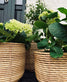- Inkluderar ett set av tre handgjorda plantkorgar